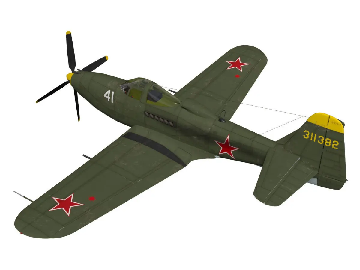 Bell P-63 Kingcobra is a fighter aircraft developed by Bell in the USA in the late WW2.The model is Soviet military markings.The texture of the original data may have changed due to export.The representation of the fuselage interior is simple modeling.The model's landing gear is divided into parts for flight and landing states.The other parts of the operating parts are separated. However, please note that the rig is not reflected in the model.This model is not intended for use in games or other low-polygon applications.This model is not intended for 3D printing.Please be careful when purchasing.