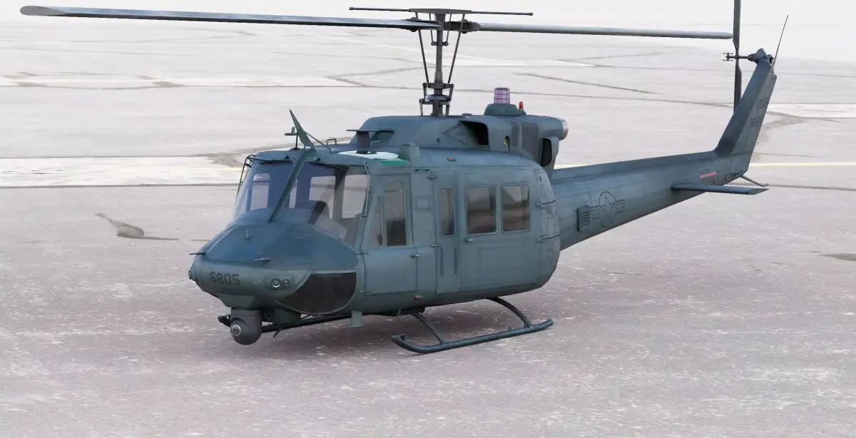 Professional-grade 3D model of the iconic Bell UH-1N Iroquois CH-135 Twin Huey USAF helicopter, meticulously crafted from authentic blueprints with exceptional attention to detail. This comprehensive model features both exterior and interior components, making it perfect for close-up renders, animations, and interactive applications.