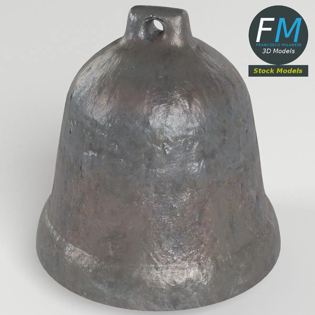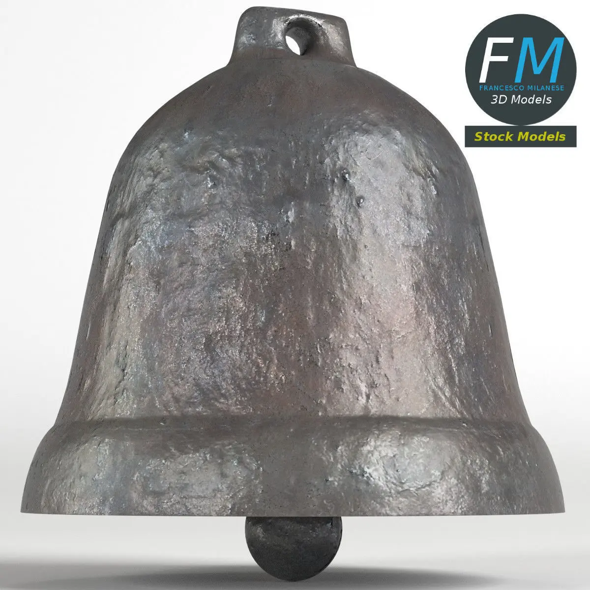 Bell 3D Model with an old iron metal Material. 2 objects (bell, clapper), parented (so you can easily edit or animate the clapper), each one with its own non overlapping UV Layout map, Material and PBR Textures set. Production-ready 3D Model, with PBR materials, textures, non overlapping UV Layout map provided in the package.Quads only geometries (no tris/ngons), no poles.Easily customizable: UV unwrapped geometries, so you can create new Textures (or modify the existing ones) using the UV Layout maps provided in the package (as png with alpha).Each Object, Material or Texture provided in the package has a unique, meaningful name.Made in Blender 3D 2.79 (Cycles materials) then exported to OBJ and FBX; materials and textures made in Substance Painter, exported for PBR, V-Ray, Unity, Unreal.PROMO IMAGES: the first image has been rendered in Cycles for Blender 3D 2.7x; in particular, you can find 11+ promo images in this description: