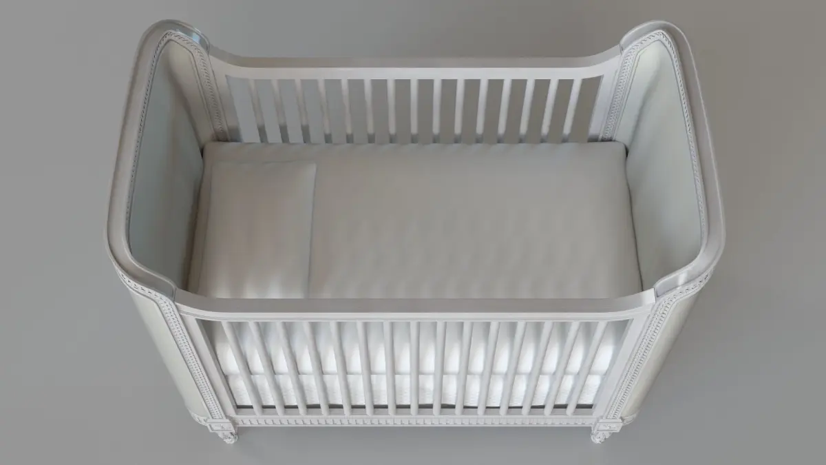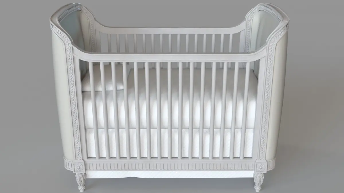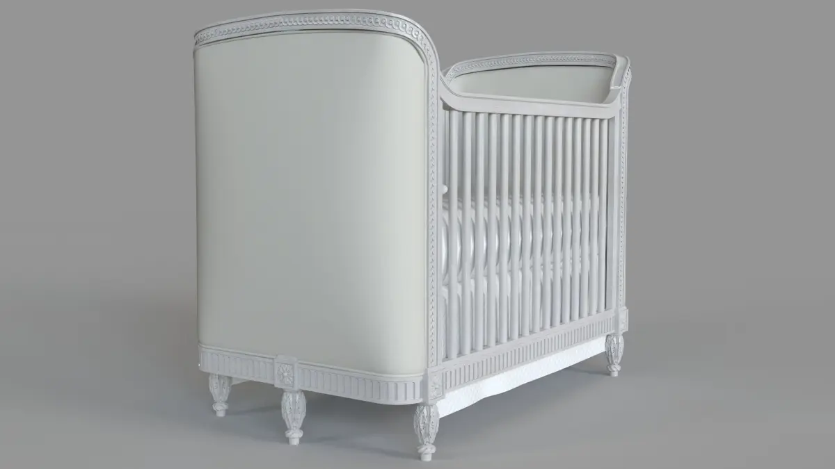 Belle Upholstered Crib Antique Grey Mist Belgian Linen Dove