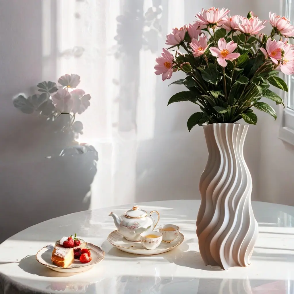 The Belluno Vase captures the essence of fluidity and organic movement with its undulating, wave-like contours that seem to flow seamlessly along its surface. This vase is a celebration of soft lines and natural forms, evoking the tranquility of water currents or rolling sand dunes. Its sculptural design adds a sense of rhythm and grace to any space, making it a captivating focal point.