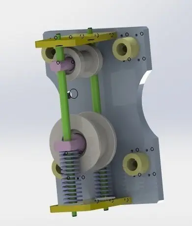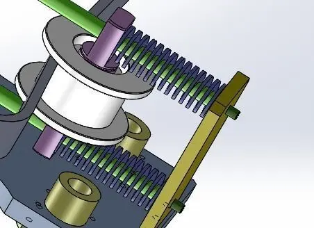 Belt tightening pulley.It is a kind of commonly used tensioning structure, which is used to tighten the passive wheel through the spring, and the belt is tightened by the combination of the active wheel and the passive wheel