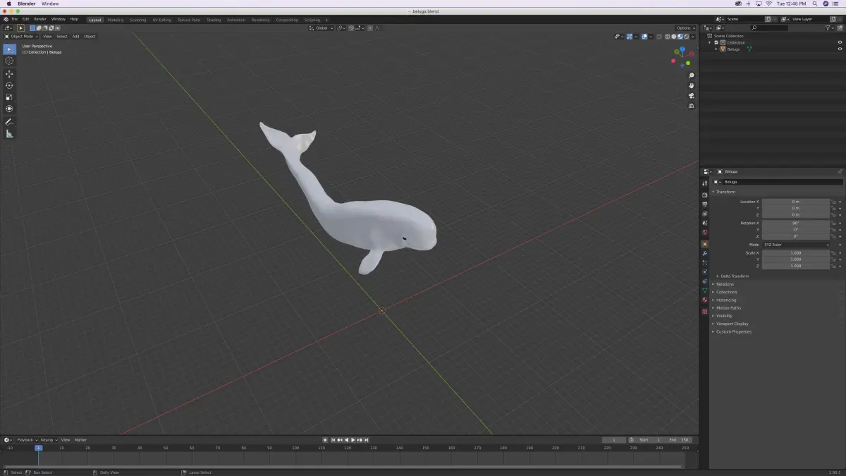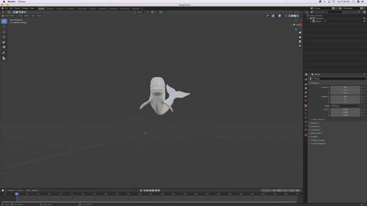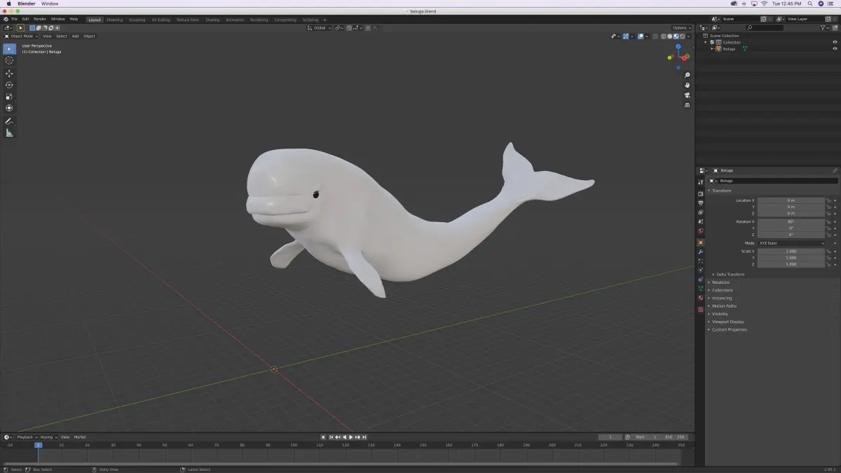 This is a fairly realistic 3d model of a beluga whale which was scuplted with blender 2.9. I say fairly realistic because I didn't use a reference or anything so it may not be super accurate. The materials are simple and work well with both eevee and cycles rendering engines. I'd love to see what you're doing with this model! You can contact me at mileshobbs@gmail.com. Please let me know if you have any questions and I'll try to respond ASAP. This is my first published model and I'm open to suggestions and advice. Also, if you want a rigged version you can let me know and I'll make one. I can also make a 3d printable one if you would like.