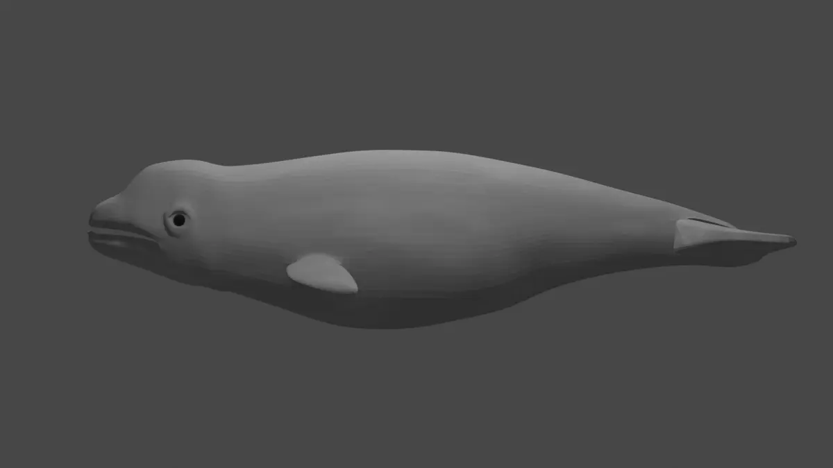 White whales are smallish, ranging from 13 to 20 feet in length. They have rounded foreheads and no dorsal fin.