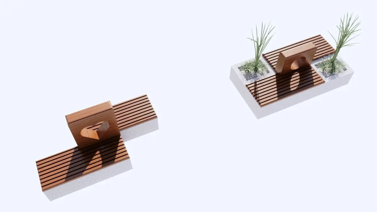2 pieces of bench model. One of the benches, the seating part of which is designed with wooden parts and concrete legs, has a flower bed detail. Plants were also modeled specifically for this study. In both models, there are heart and circular spaces in the middle. Images and video have been added as an example. Thank you for the interest you have shown. You can make a more economical purchase with the discount coupon in the profile. Please do not forget to like and comment.