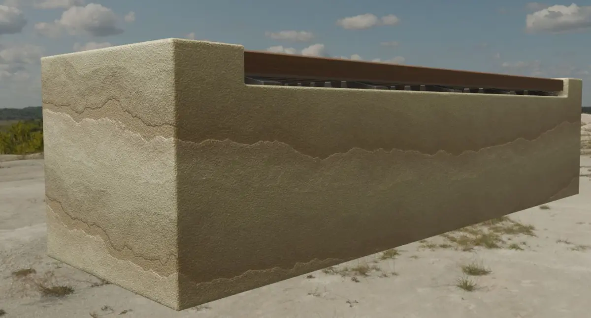 Wood Bench on Sandstone block.