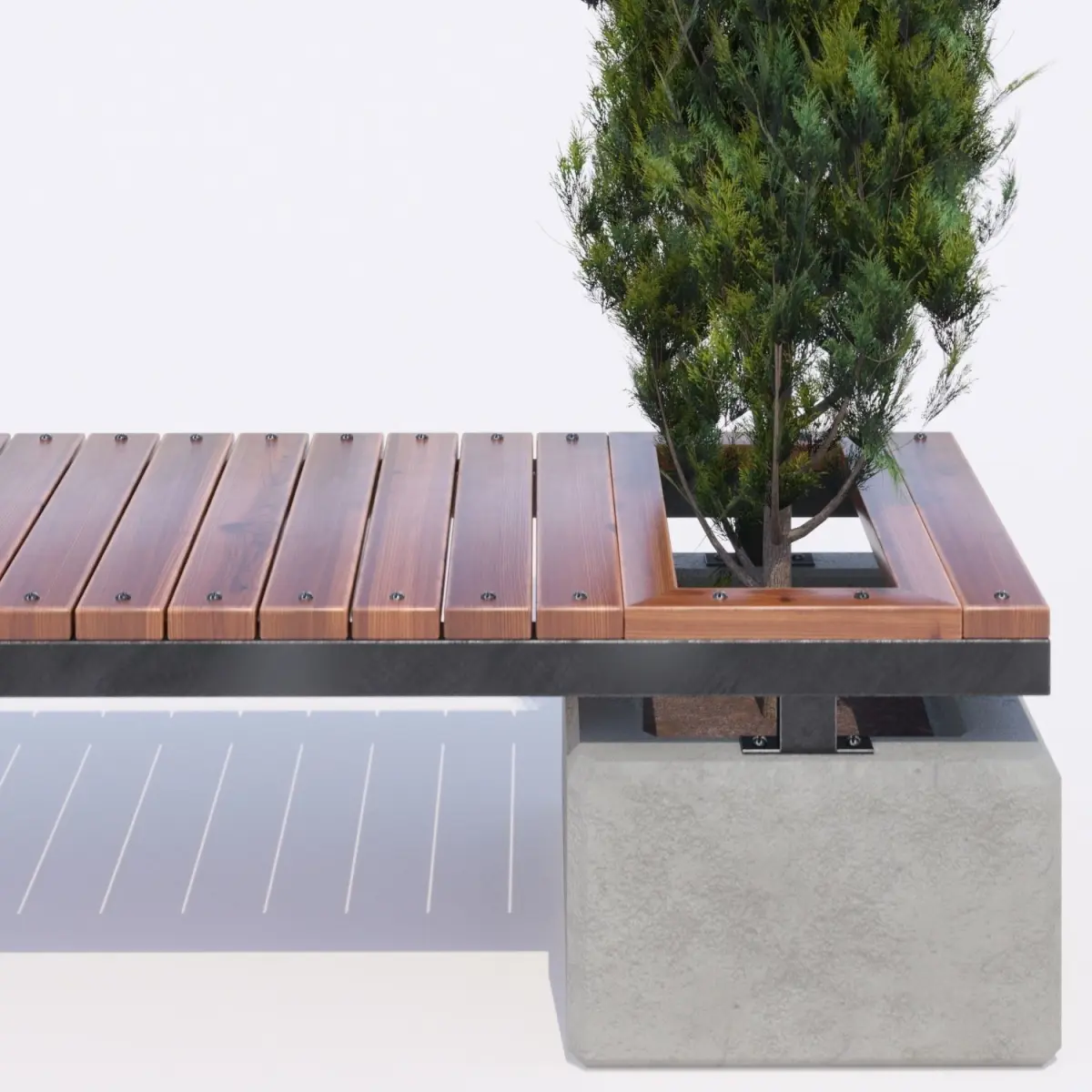 Dimensions2000x650x450(h)Bench flowerpot concrete tree thuja