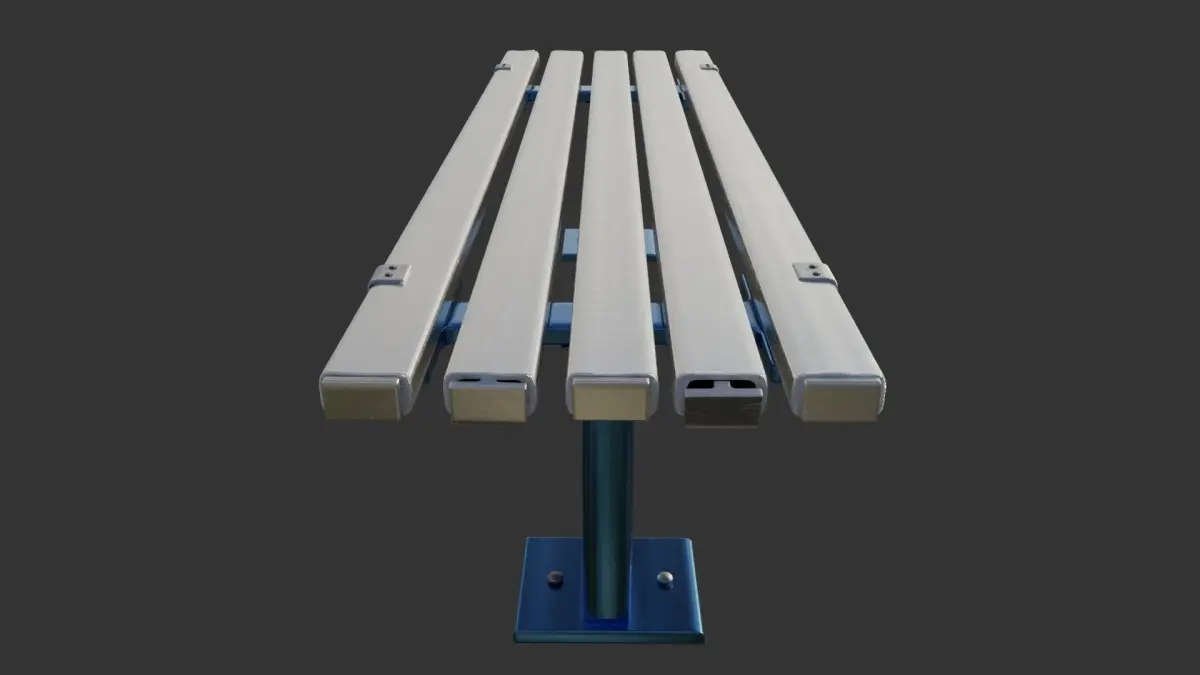 This bench would look great in a clean pristine environment - perhaps a garden or picnic / park area. The reflective PBR metal workflow (as captured in the renders from Blender using Cycles Rendering using the metal textures from Poliigon) will really help deliver a sense of depth and realism in your scene, bringing out the colours and other intricacies of that your surrounding scene has to offer. The additional 'scratched' overlay texture can be added to the seat poles as well, adding more wear to your model as seen in the renders, however it's not essential.