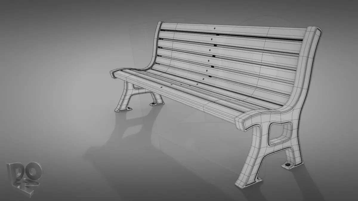 Detailed, subdivision-surface-ready, 3d model of a bench.