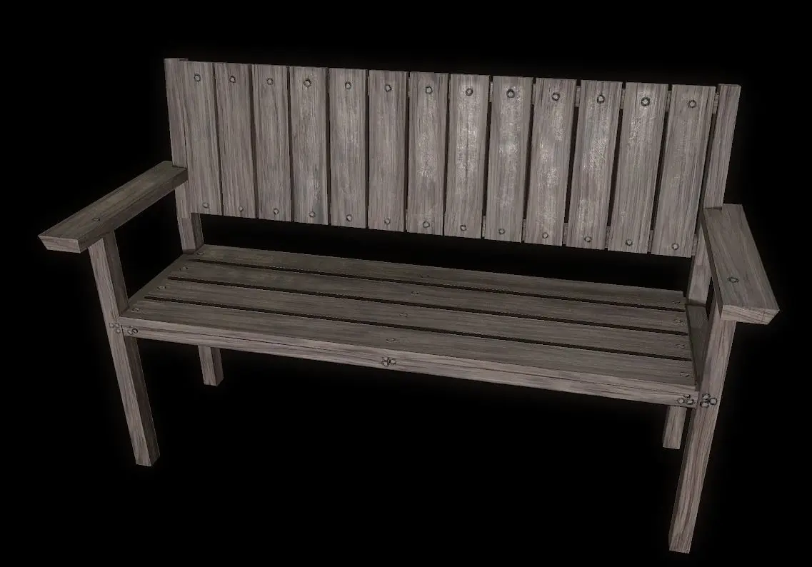Low poly model bench trees obj, fbx - 288 polygons. (+ high poly model 12679888 polygons.)6 texture options: blue, green, old, red, wood, wood2.PBR textures-Metallic Roughness.Texture resolution is 2048x2048, PNG format.Render Marmoset Toolbag 3 light settings files are present.
