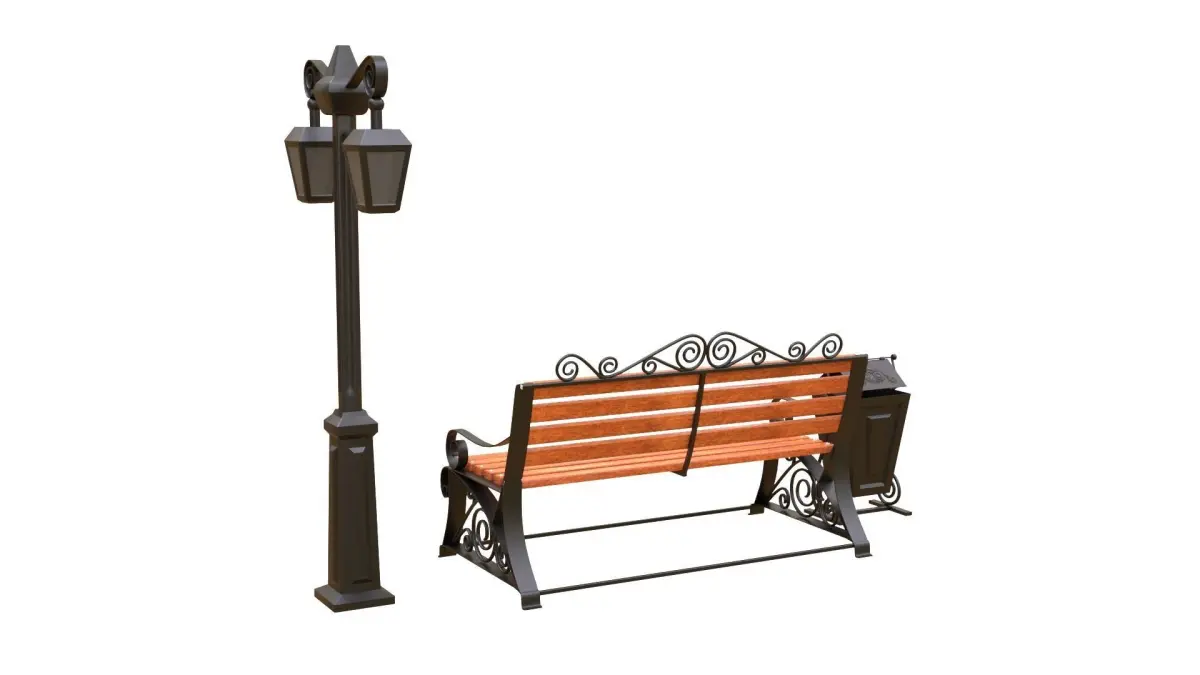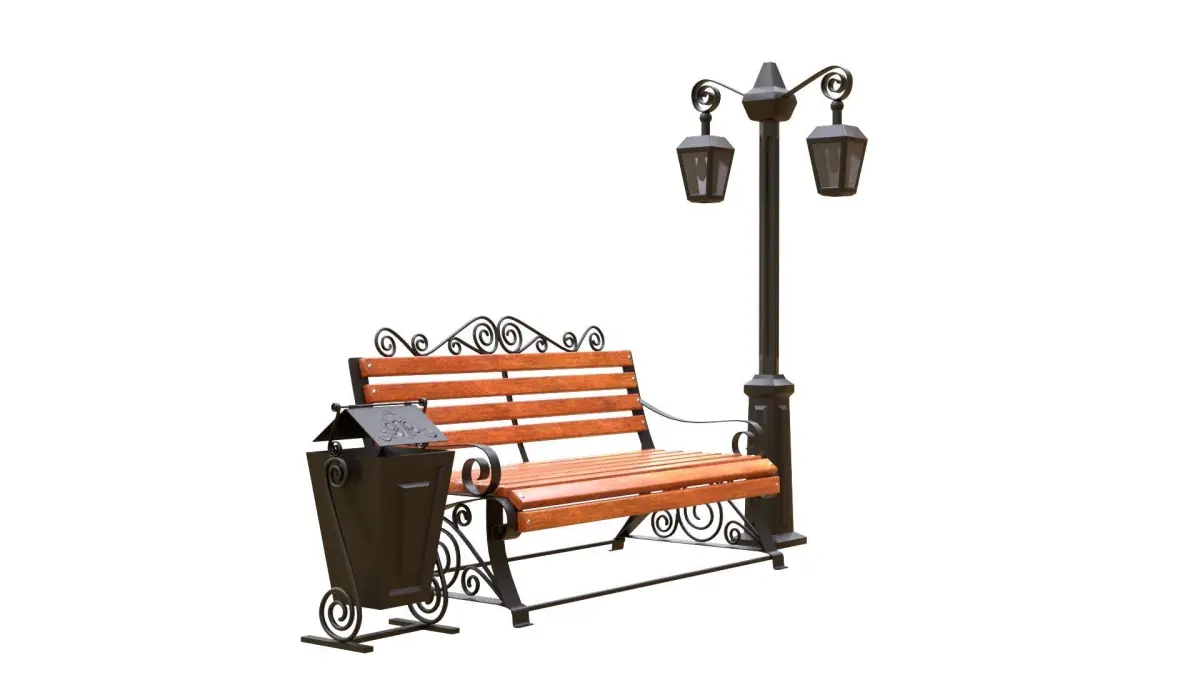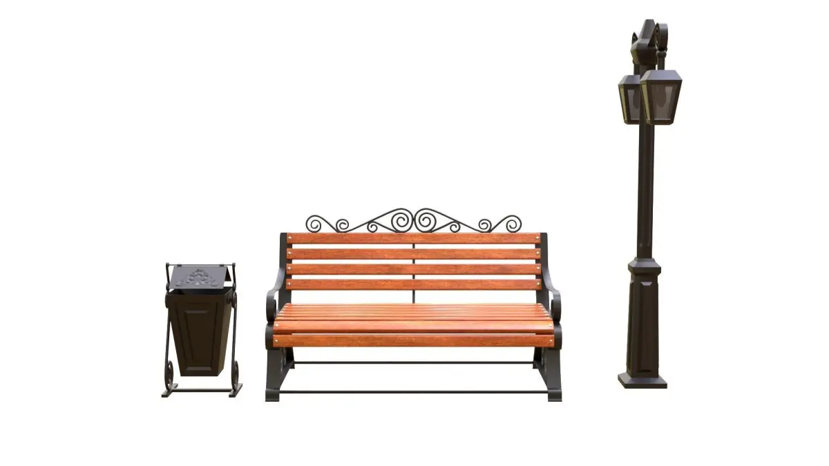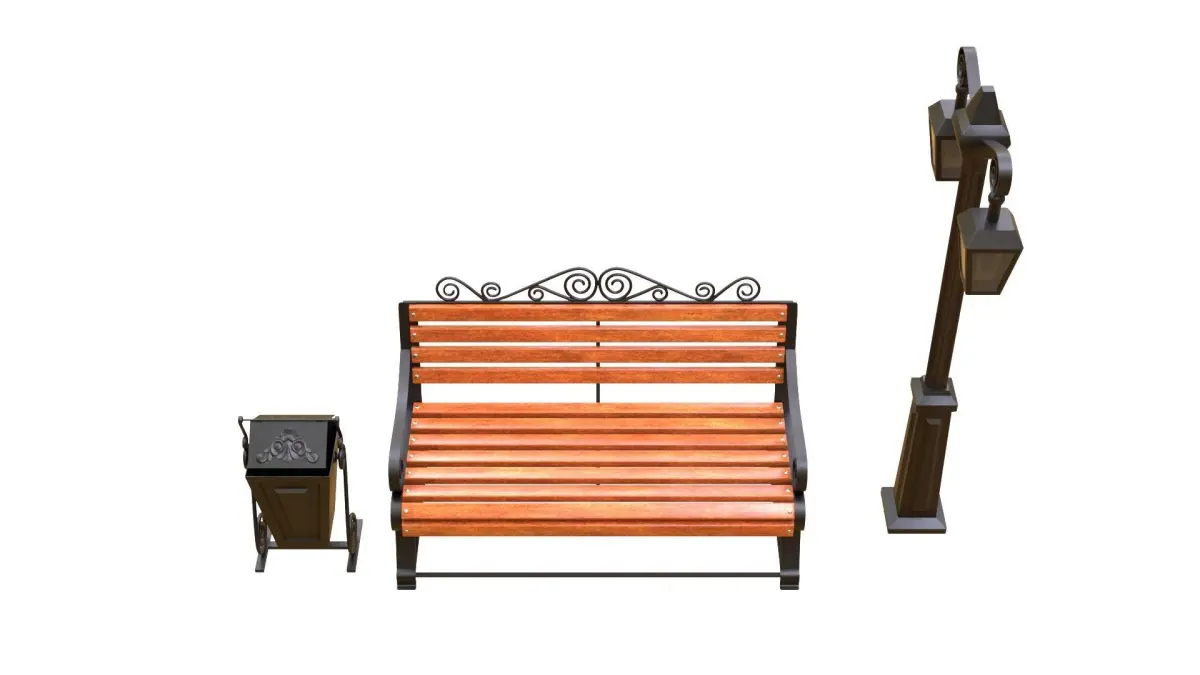 Bench_ urn_streetlignt PBR 3D model