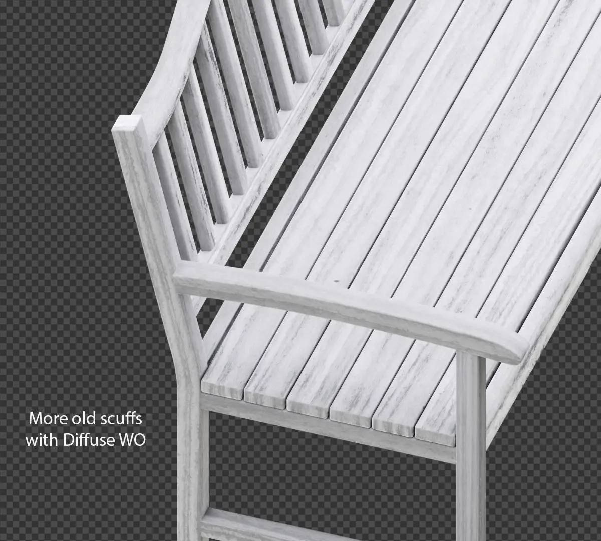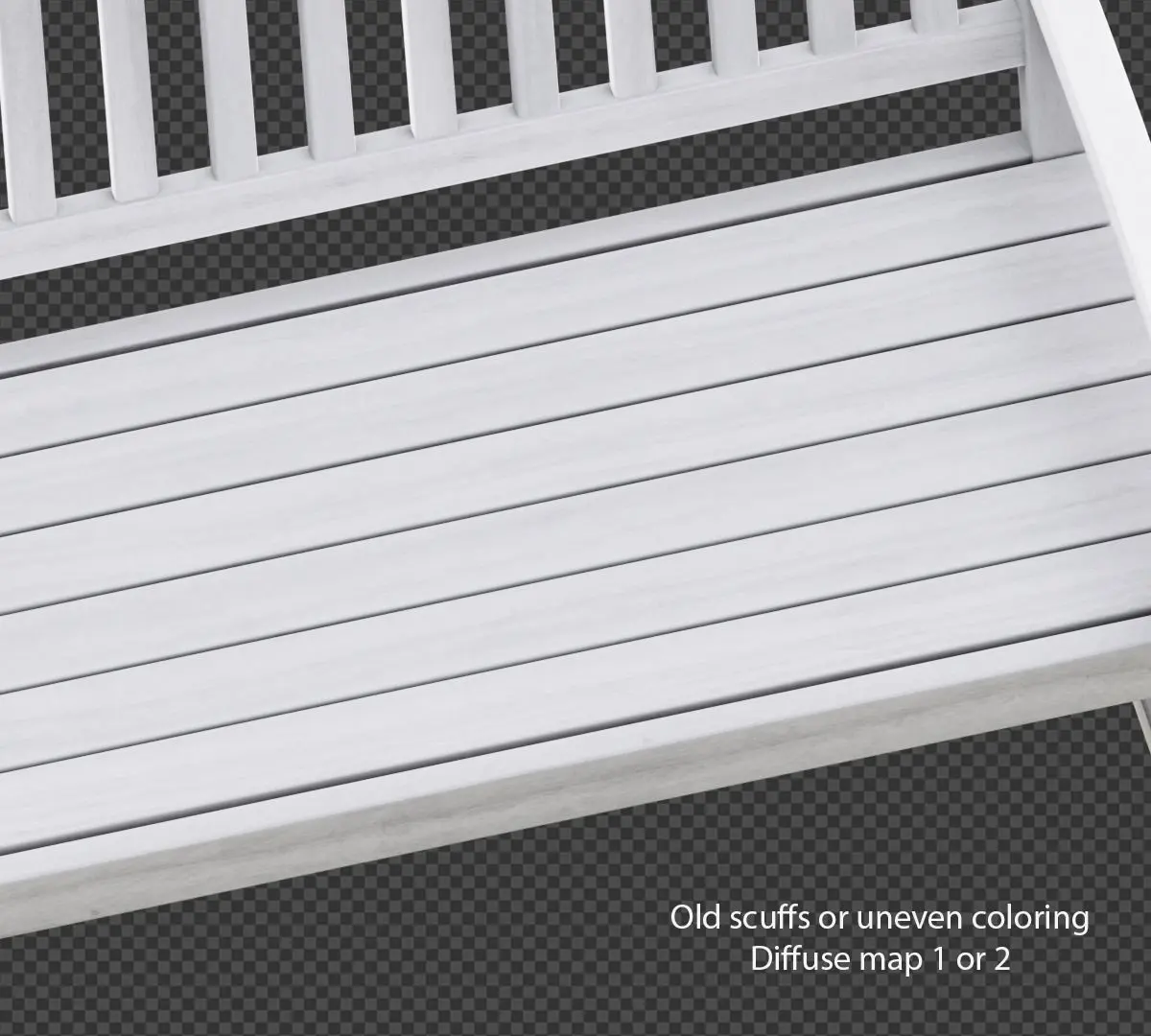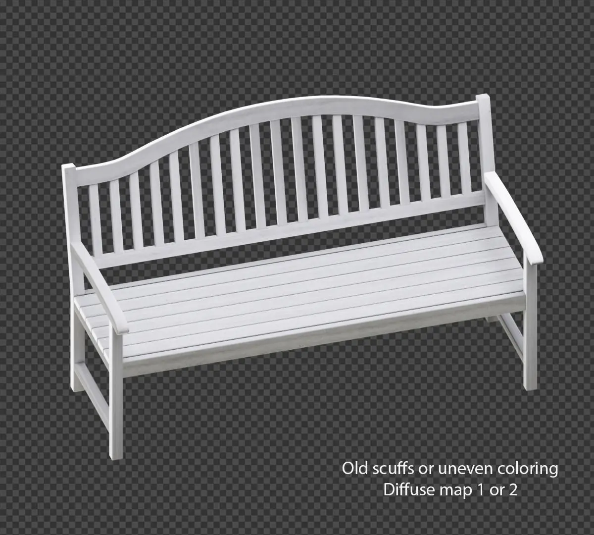 Street bench with 4 color textures - you can choose a uniform white or old scratches / uneven coloring of varying degrees of intensity.