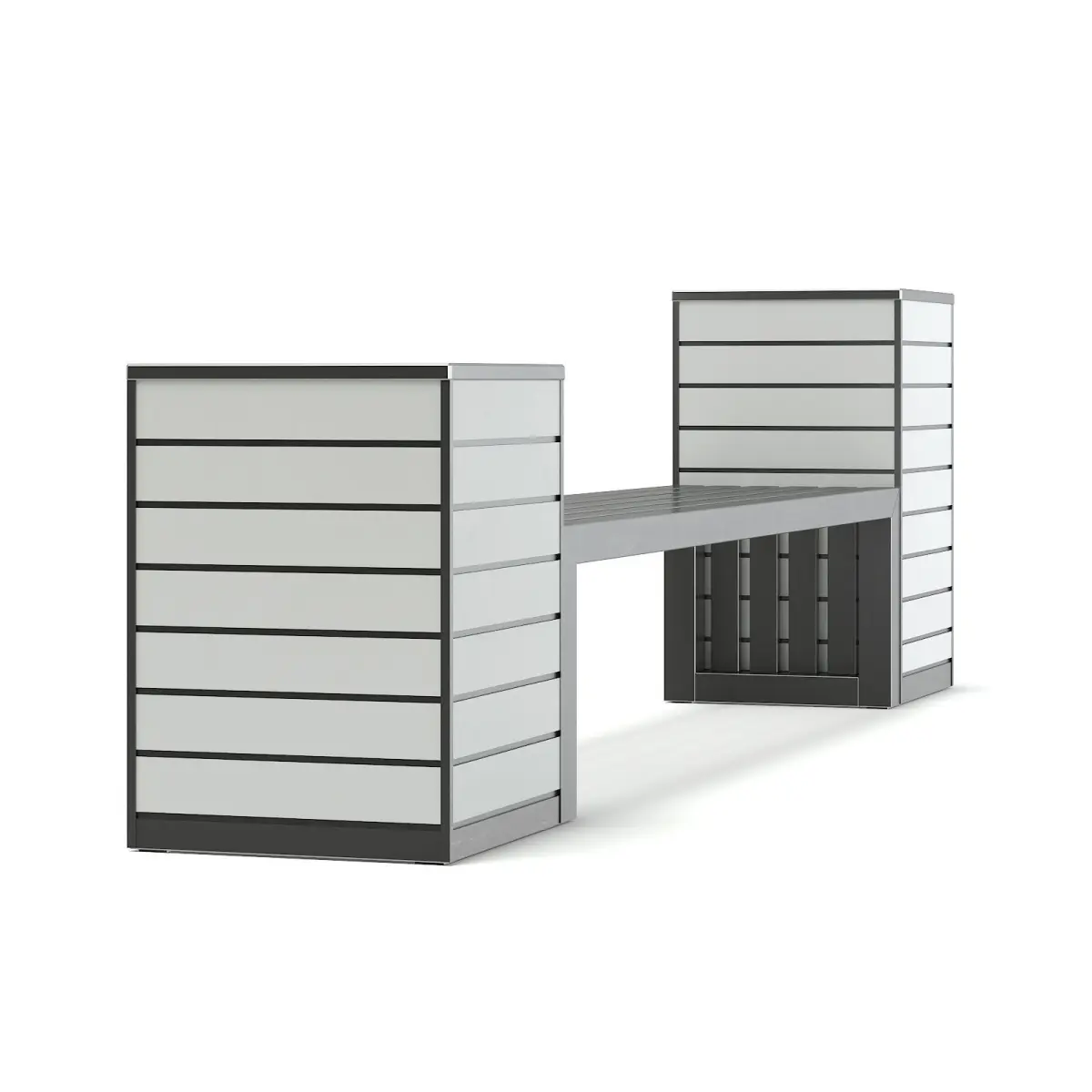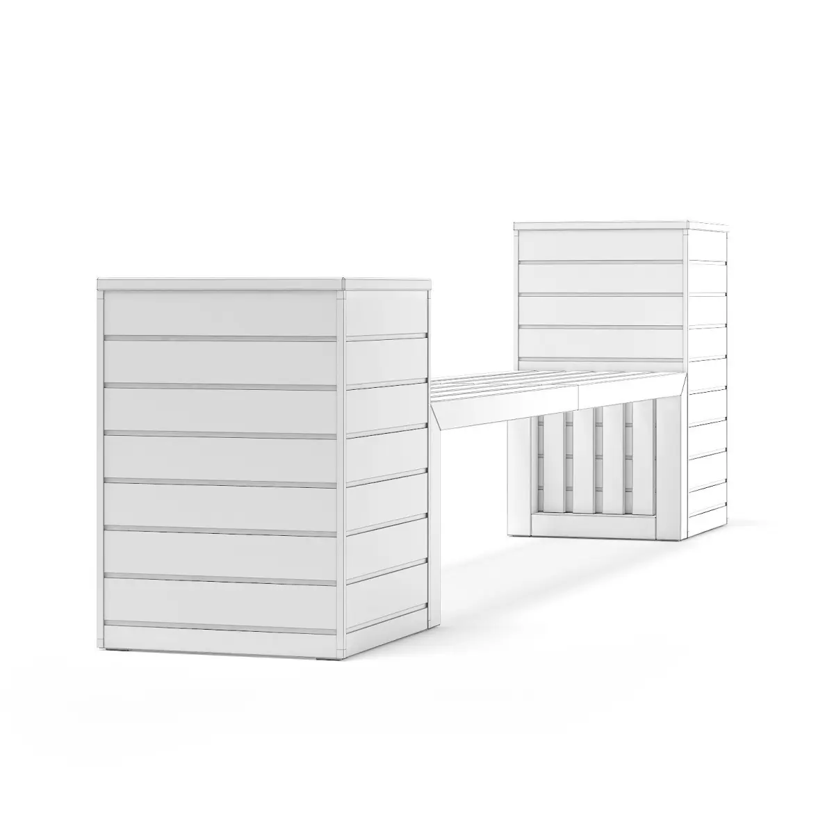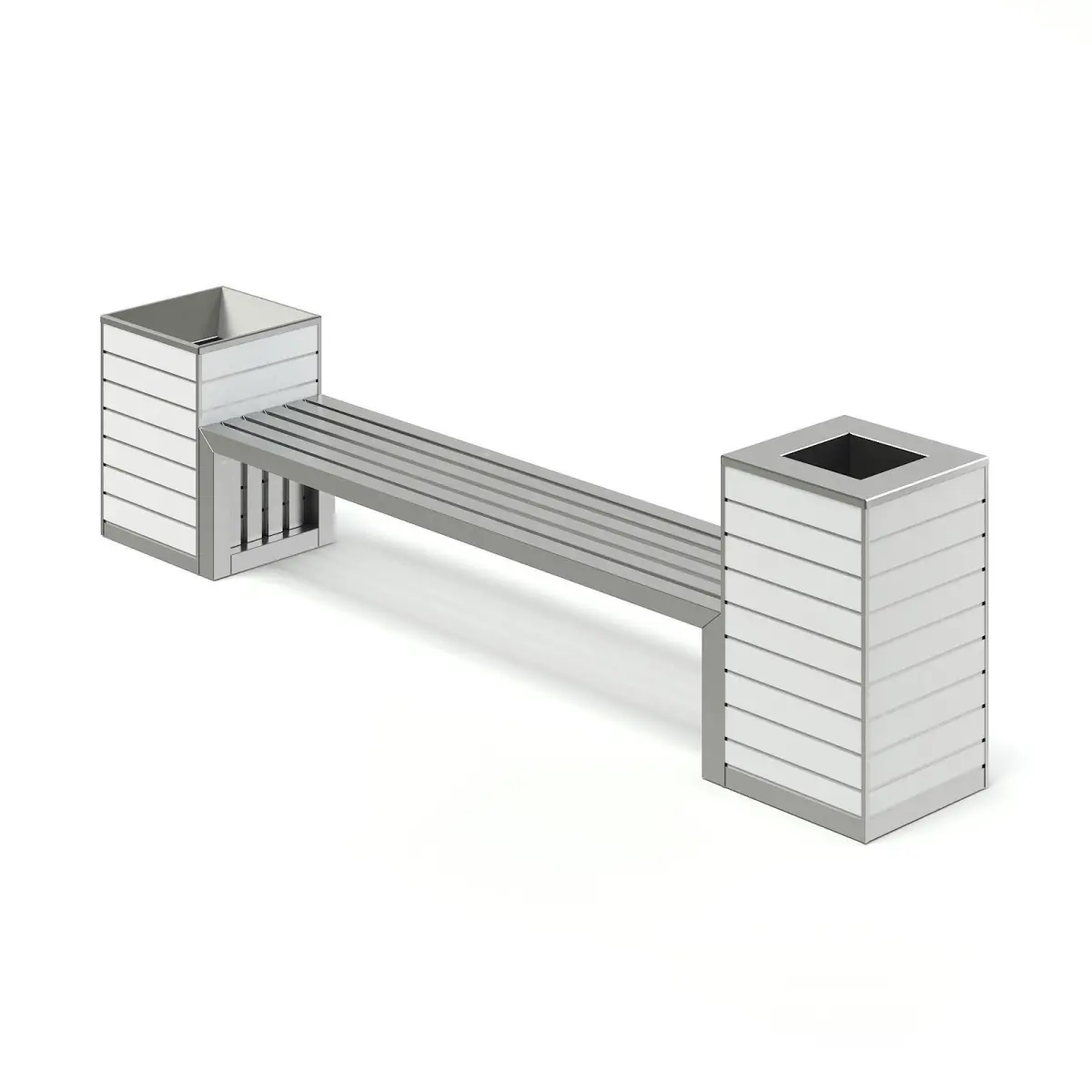 Metal bench with recycle bin 3d model. Compatible with 3ds max 2010 (V-Ray, Mental Ray, Corona) or higher, Cinema 4D R15 (V-Ray, Advanced Renderer), FBX, OBJ and Unreal Engine.