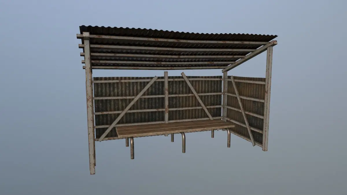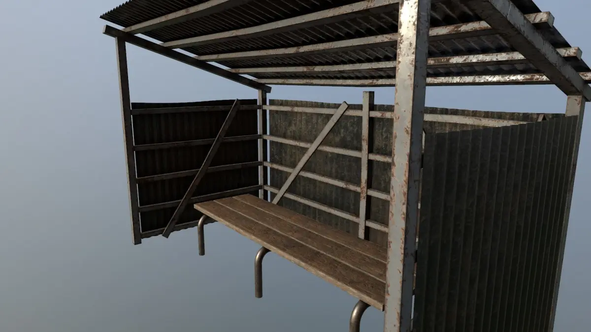 A wooden bench covered with rusted metal panels.Gameready, PBR textures (2048x2048),rendered in Marmoset.Map included: