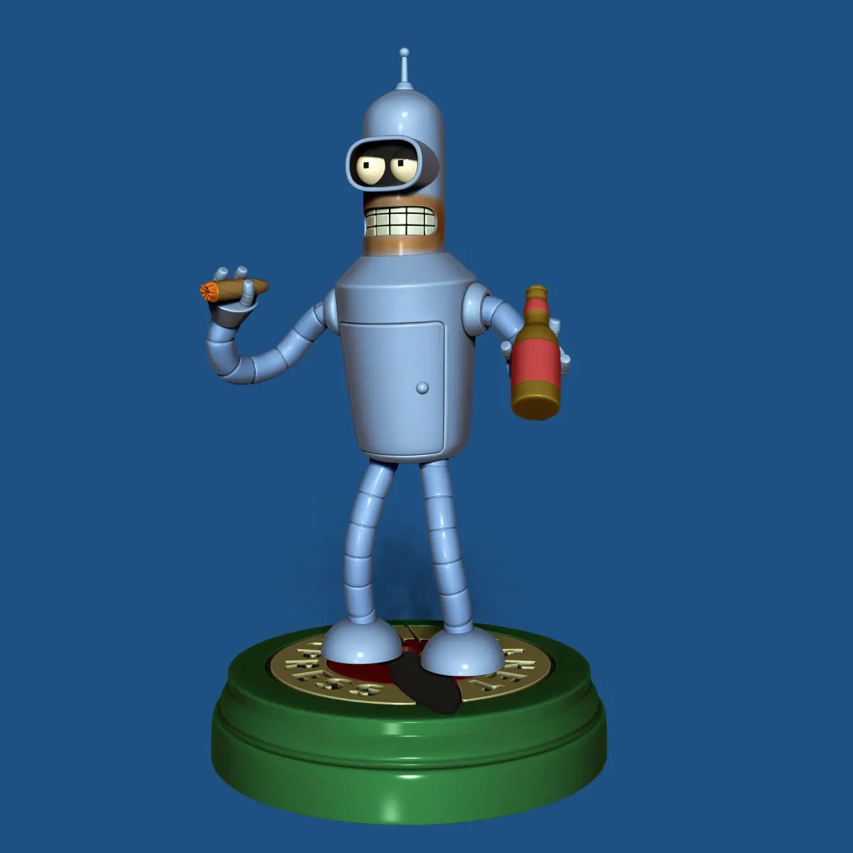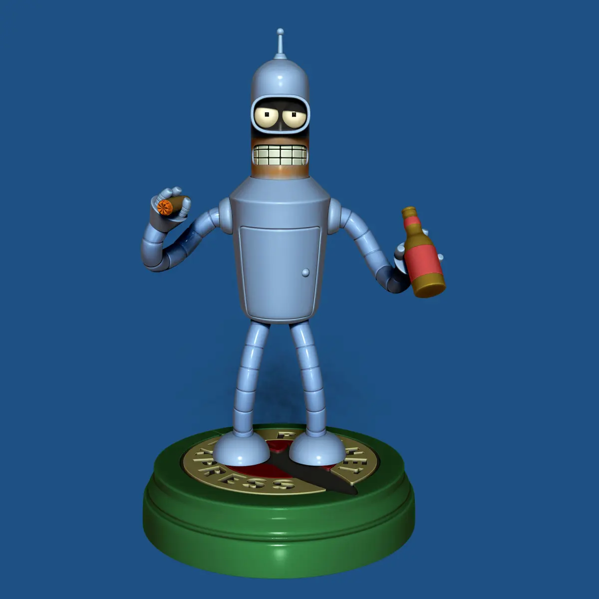 Bender Bending Rodríguez for 3D Printing (STL File-100mm)Bender, a high-tech industrial metalworking robot, was built in 2996 at Fábrica Robótica De La Madre (Spanish: Mom's Robot Factory), a manufacturing facility of Mom's Friendly Robot Company in Tijuana, Mexico.[3] However, the story of his construction remains a mystery.