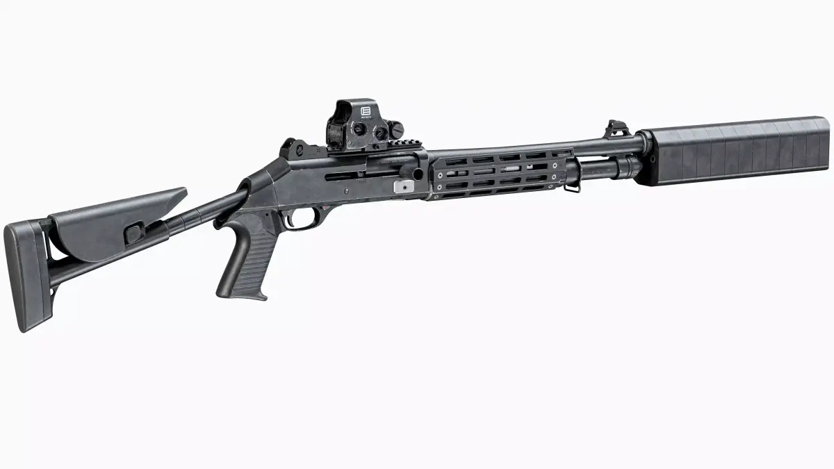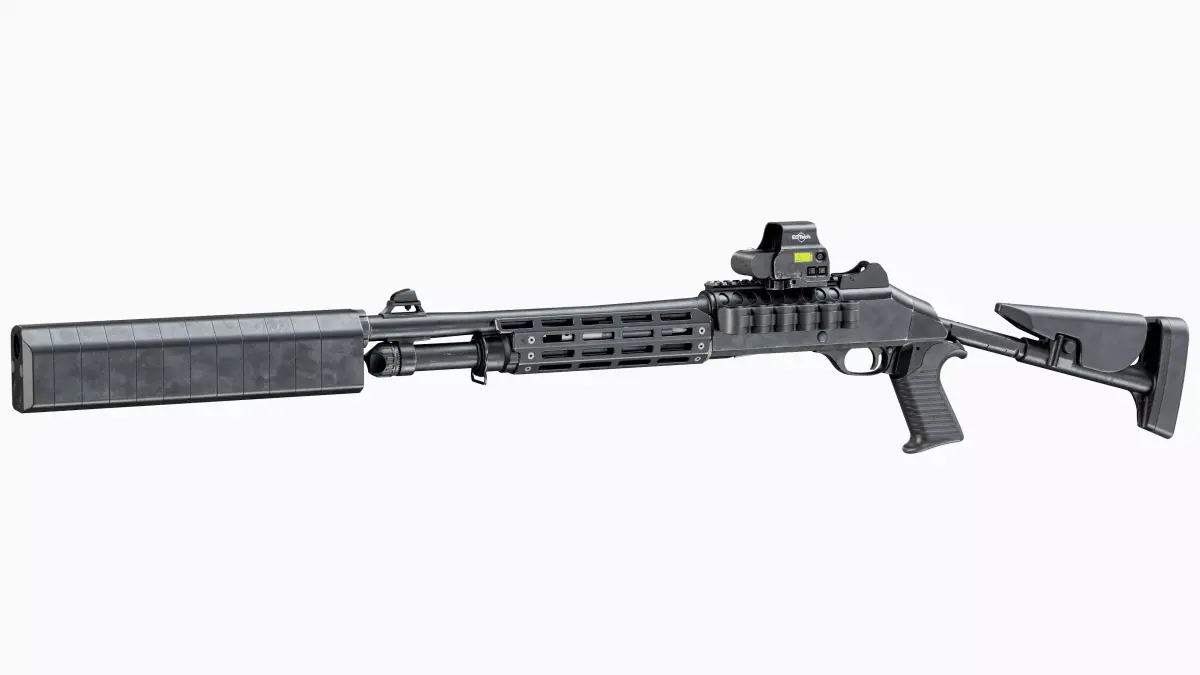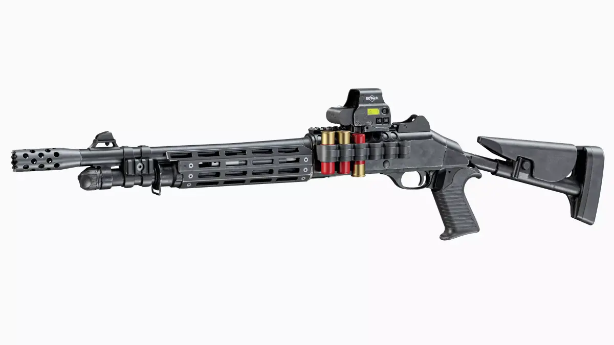 Game-Ready high-quality 3d model Benelli M4 Tactical Modular Shotgun 12 caliber for Unreal Engine, Unity and other PBR game engines, renderers, first Person Shooters, VR games, and your other projects.