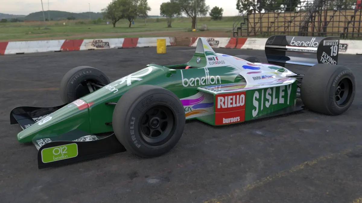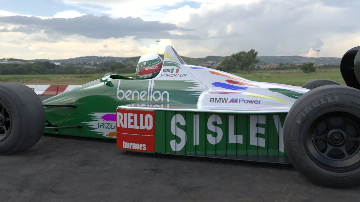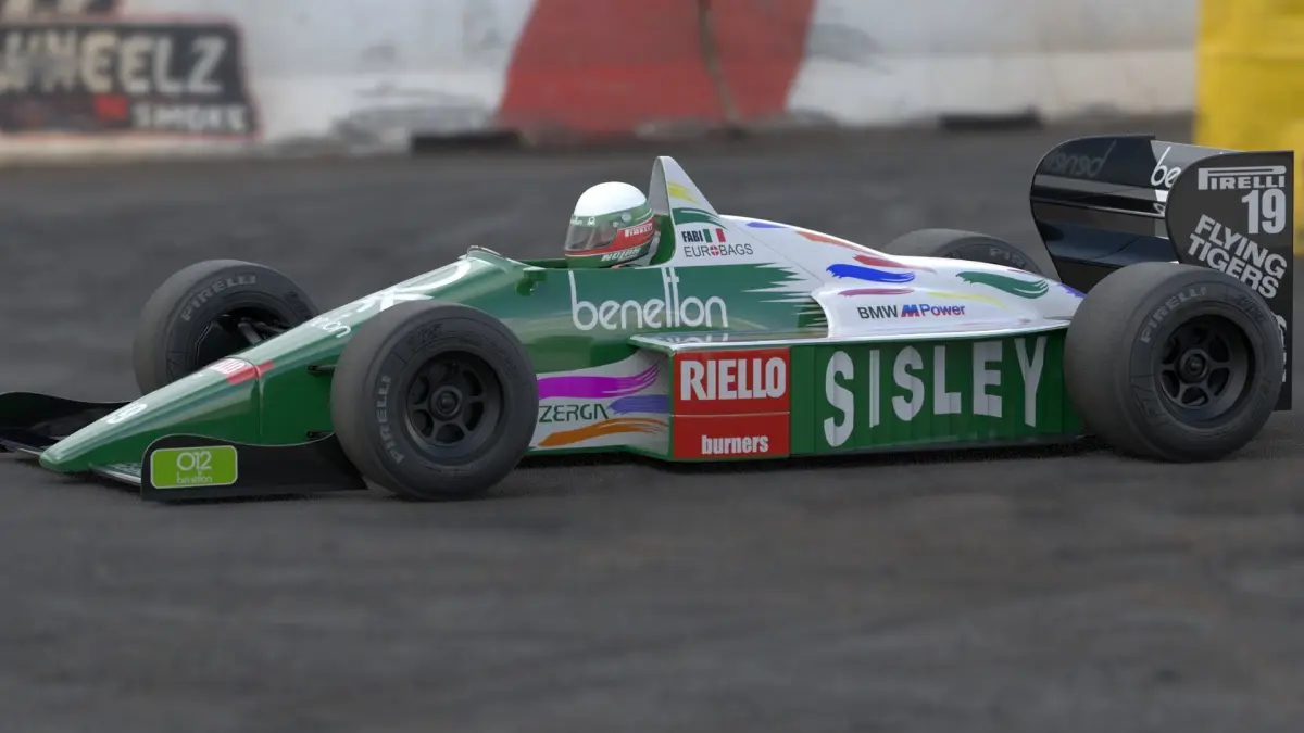 Benetton B186 from the 1986 Formula-1 season with one of the iconic Benetton livery. The model comes with the helmet of the driver, Teo Fabi. It was the first car to be costructed and raced by Benetton. Its 1400 HP BMW engine is still the most powerful in the history of Formula-1.