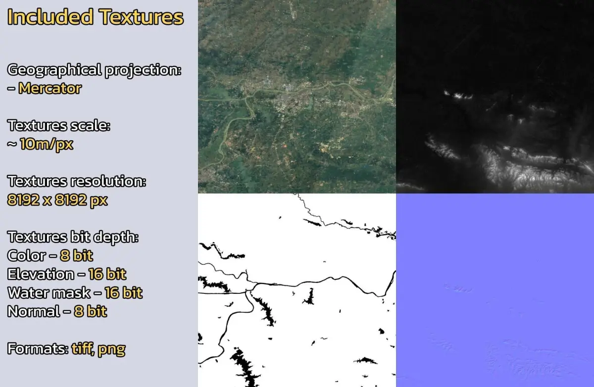 Warning: minor clouds/artifacts may be present on the diffuse color satellite texture due to the nature of the dataset. Check product images.
