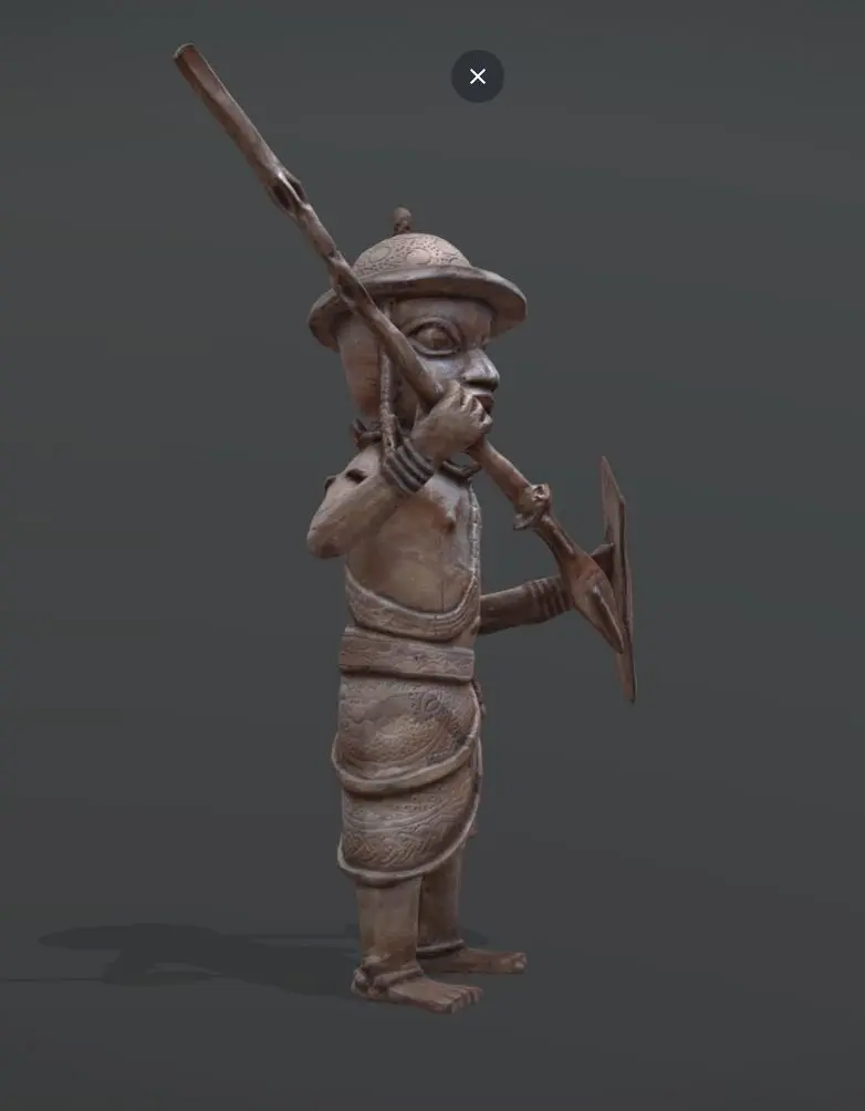 Source: Omorogbe, Aigbe. Benin Warrior - Asoro, Bronze-cast(lost-wax), Private collection, Benin city