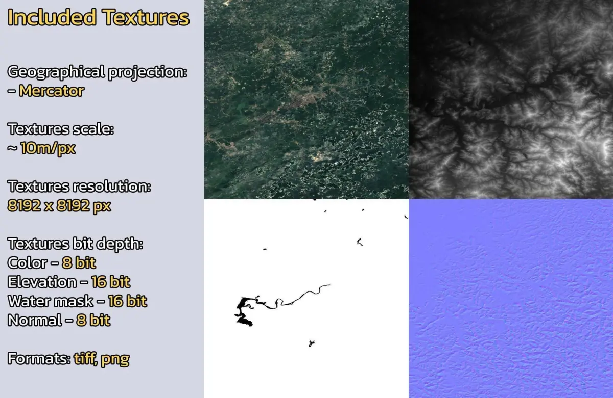 - Textures resolution: ~10m/px