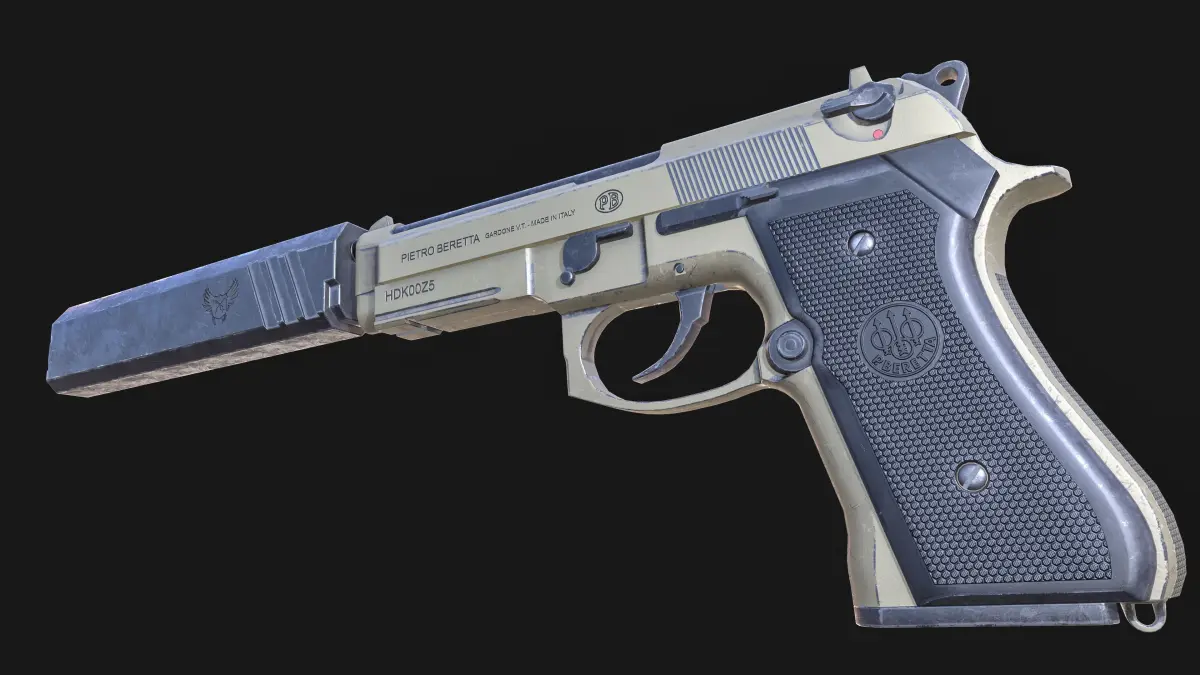 High Poly Beretta 92 Handgun Pistol 3D Model BLEND, FBX & OBJ.