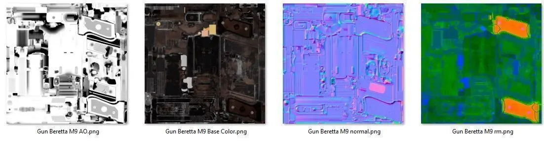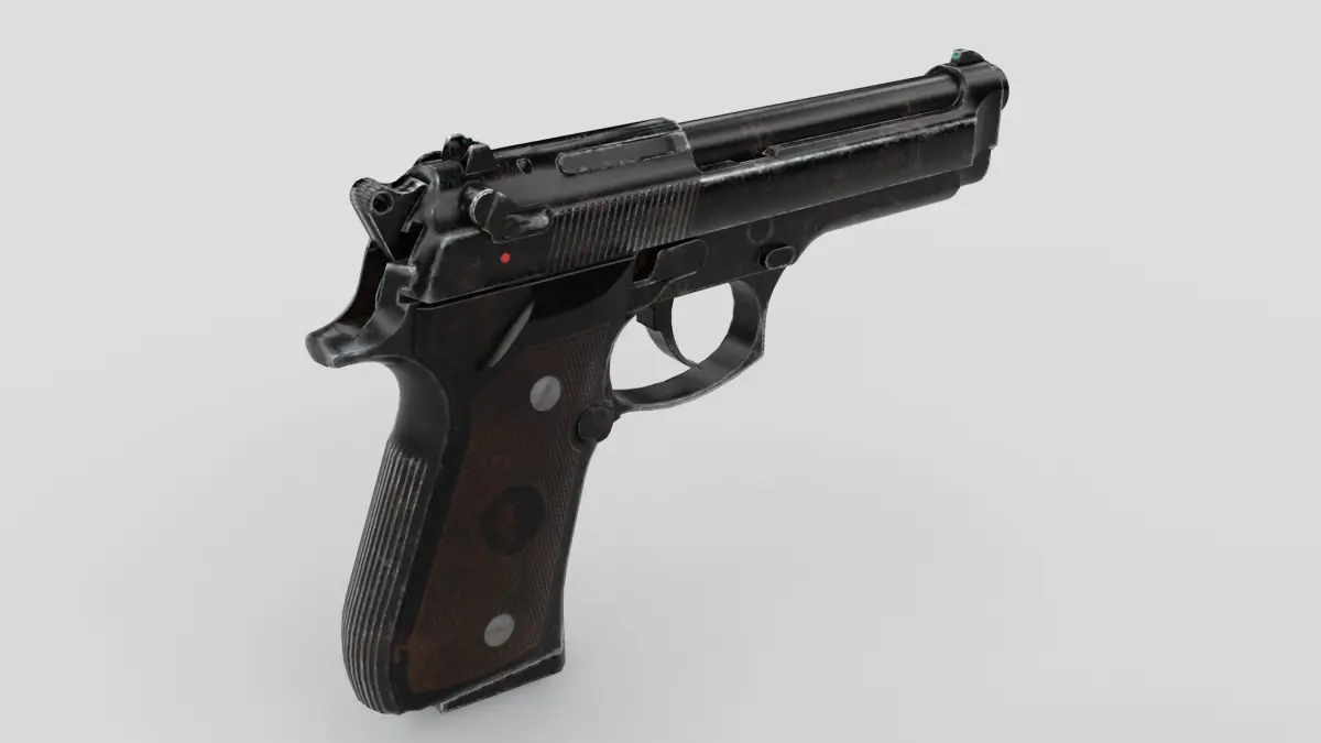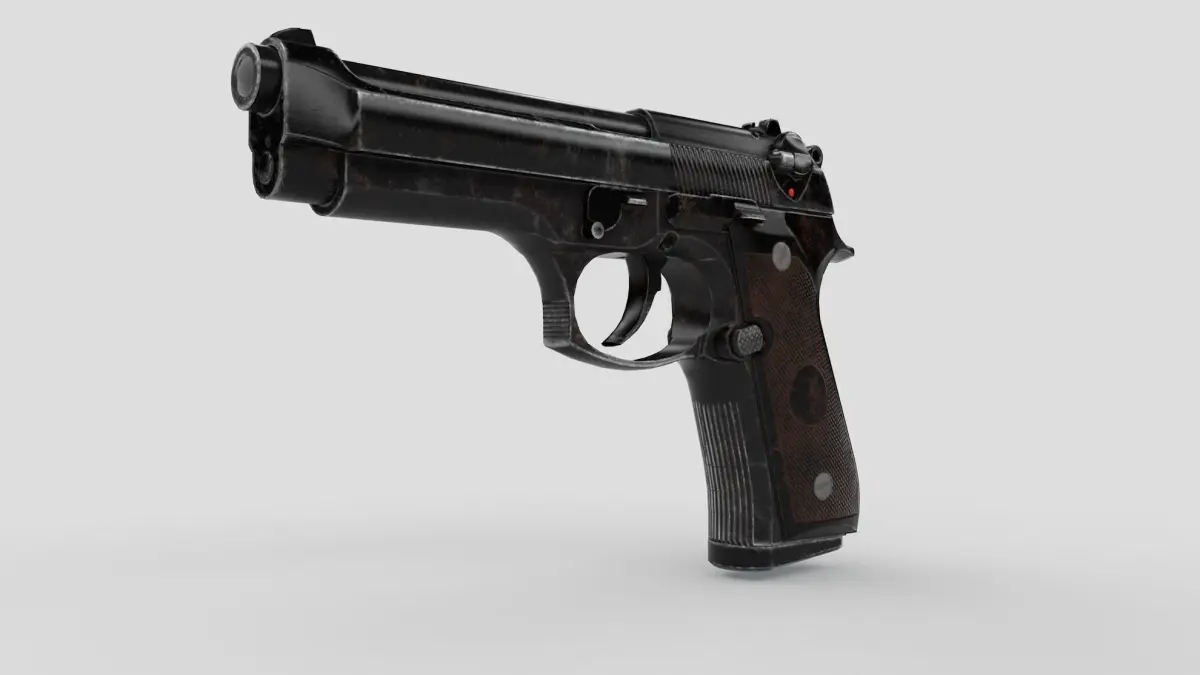 3D model, Beretta 9mm weapon. textures PNG, PBR, Low poly,, ready for games.