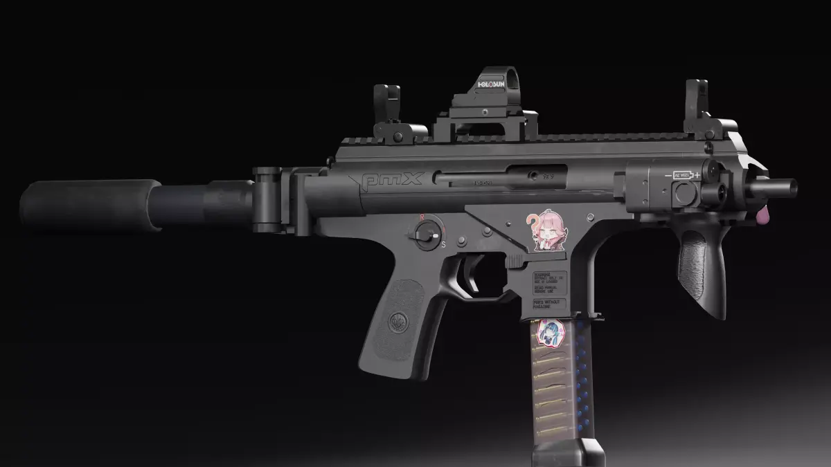 The Beretta PMX is a submachine gun designed in 2013 as a modernization of the classic PM12. It features ambidextrous controls and a mold-injection polymer frame, embodying decades of submachine gun “homologation.” With its lightweight construction and ergonomic design, the PMX balances reliability and comfort for modern tactical use. Stickered and base textures availiable