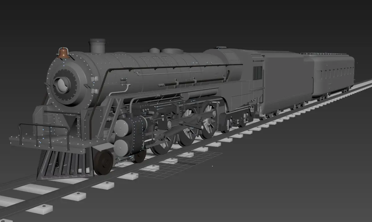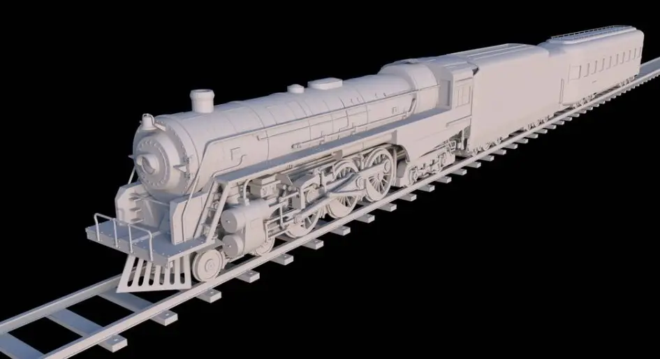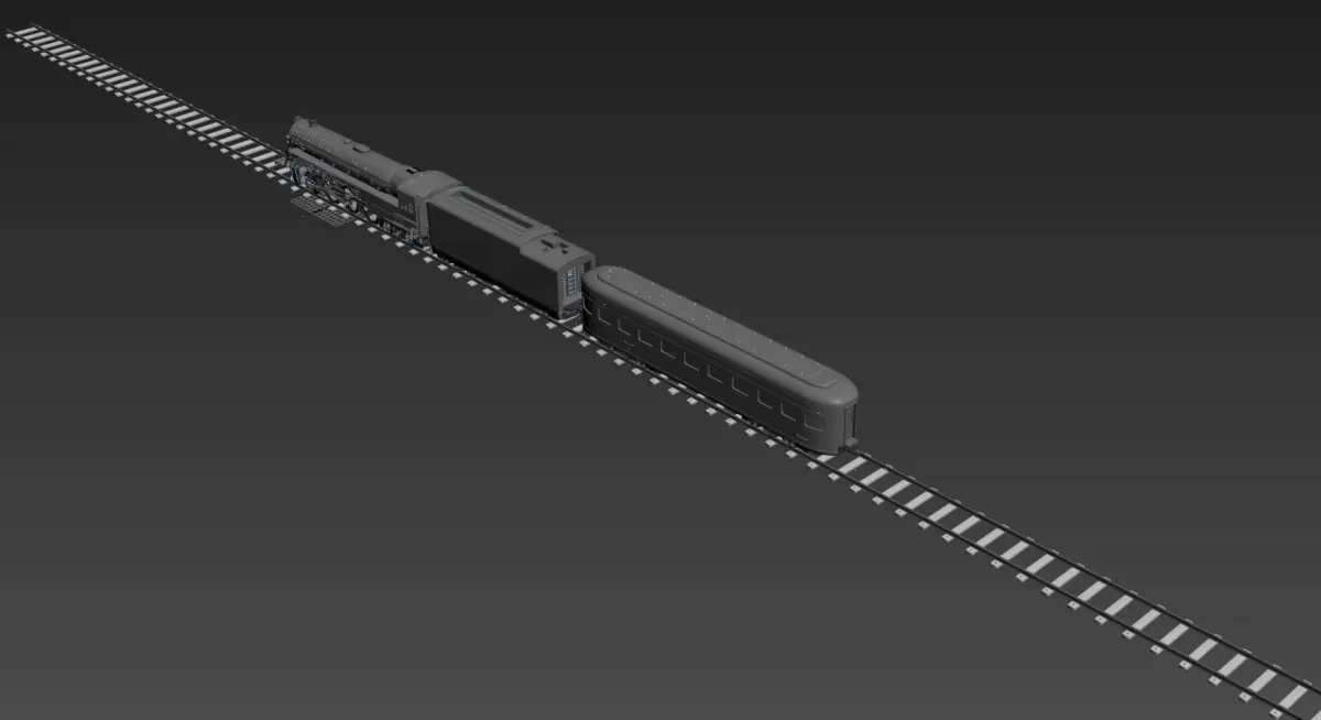 This meticulously crafted 3D model captures the grandeur of a classic steam locomotive and passenger car combination from the golden age of rail travel. The model appears to be inspired by the streamlined steam locomotives of the 1930s-1940s era, featuring:Locomotive Details: