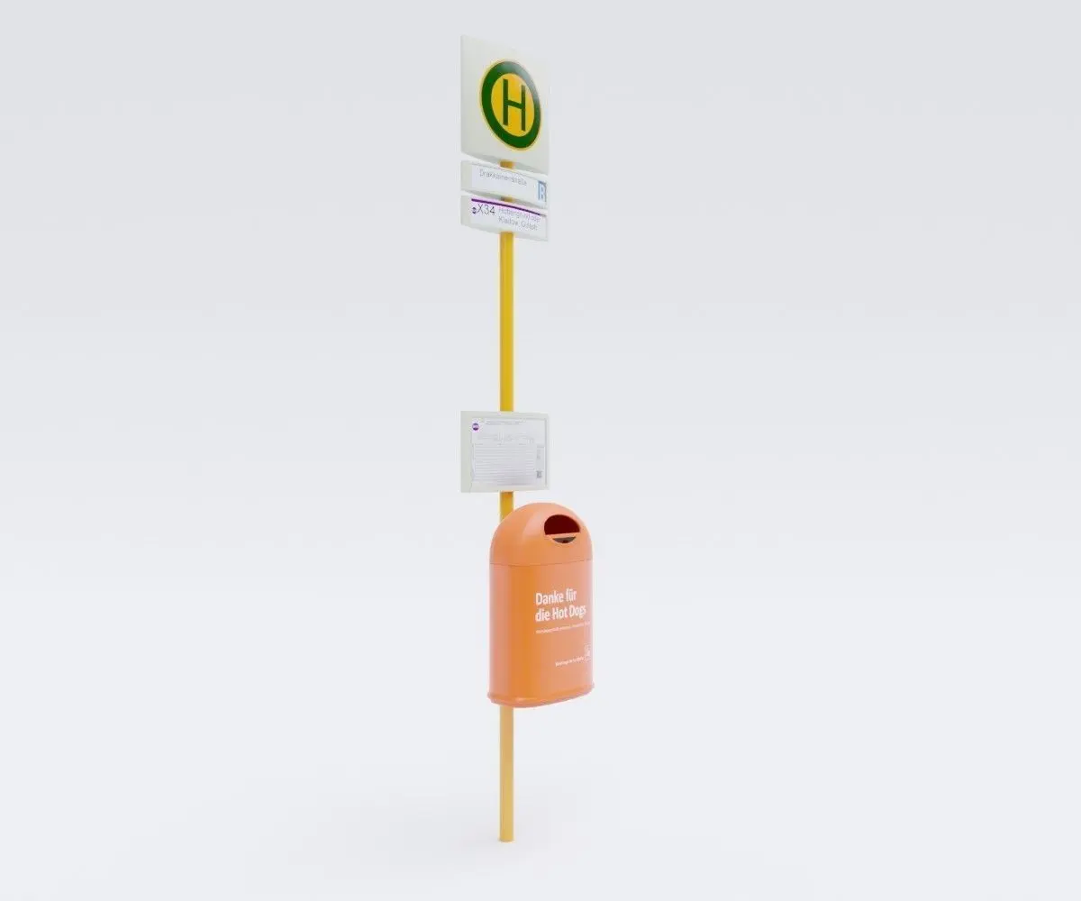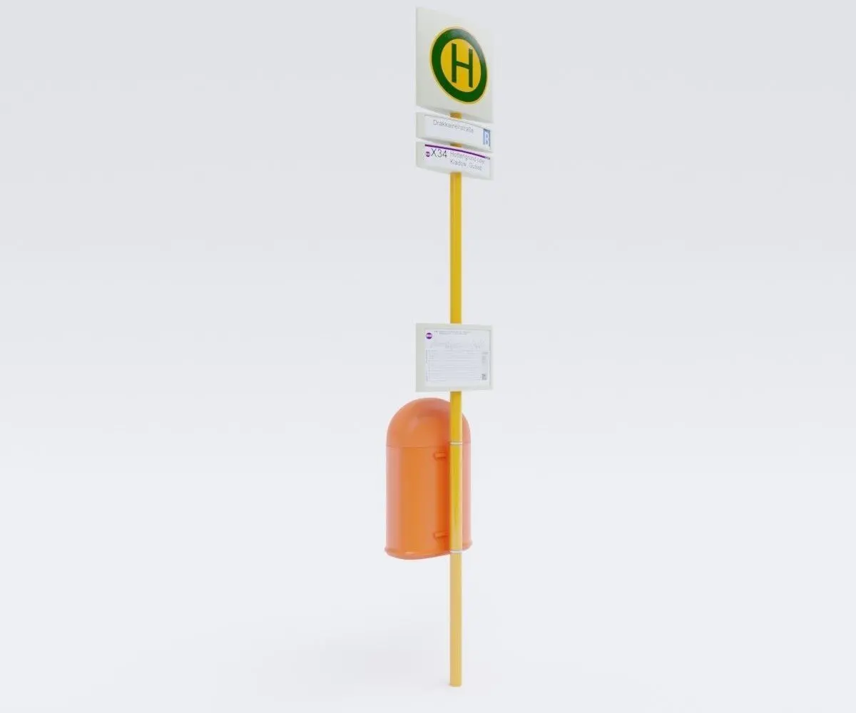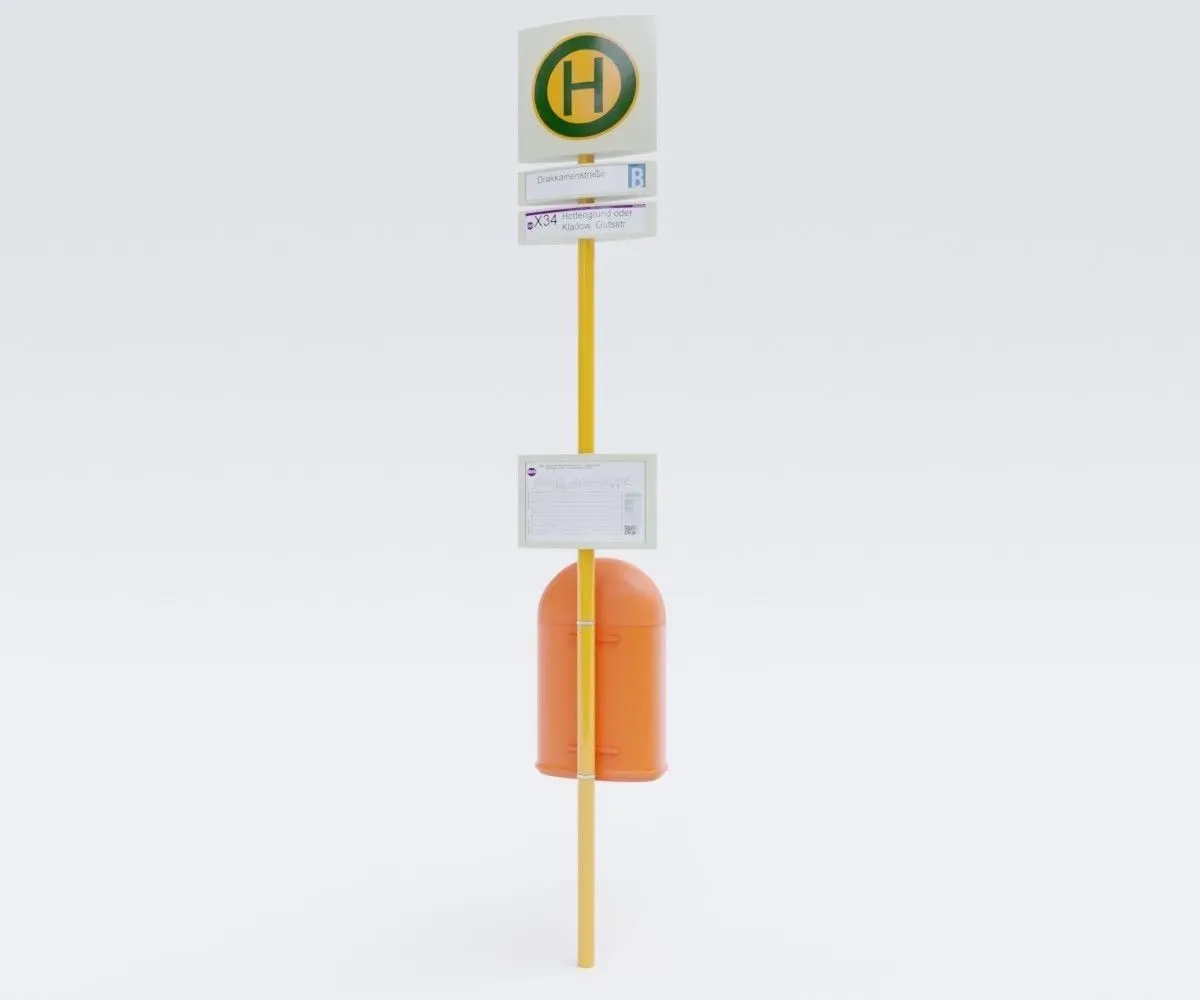 This model is element of German Berlin Bus Stop Sign street elements pack 3D model