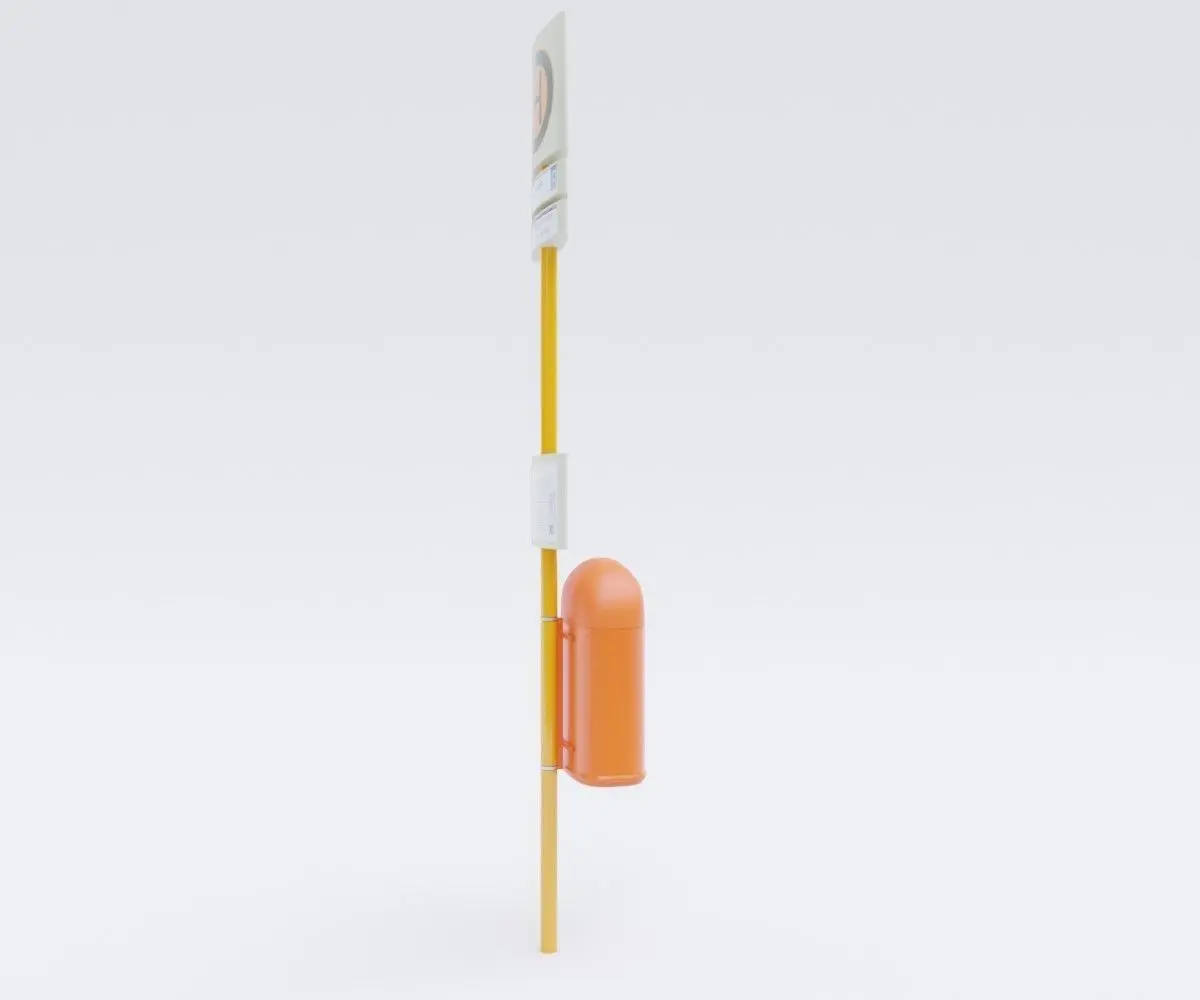 High quality 3d model of bus stop sign with recycle bin. The model have a lot of details so can be used for photo realistic projects.