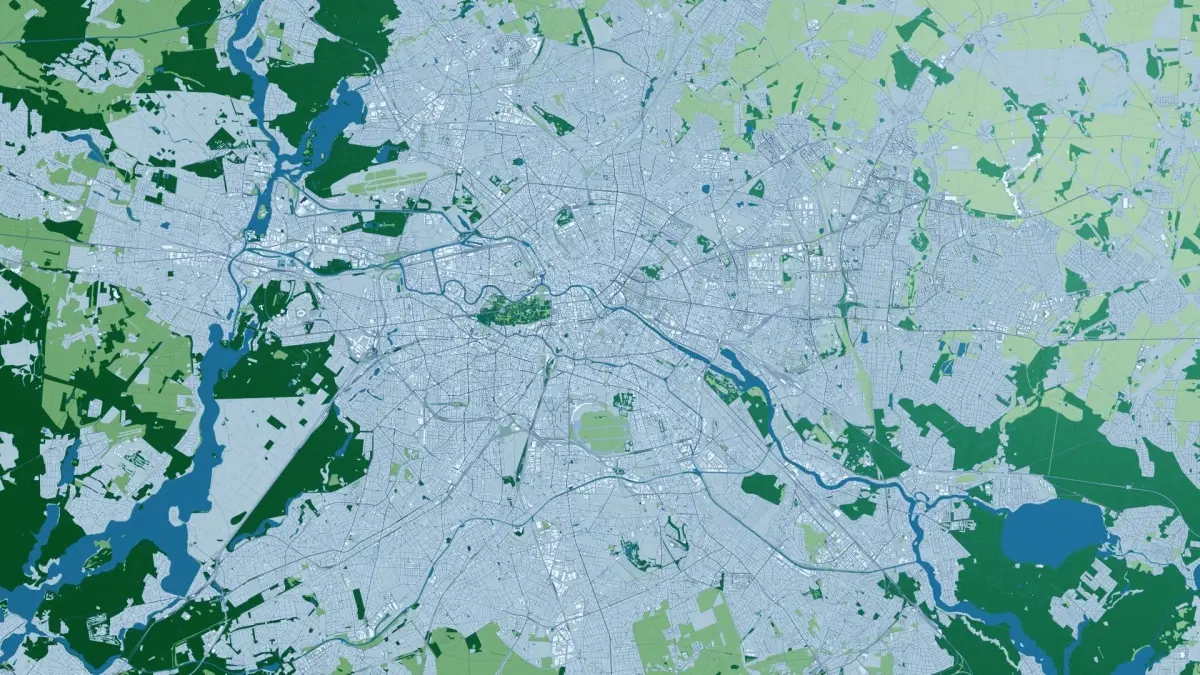 This is a 2019 OSM map version of a full Berlin city and surroundings, including terrain