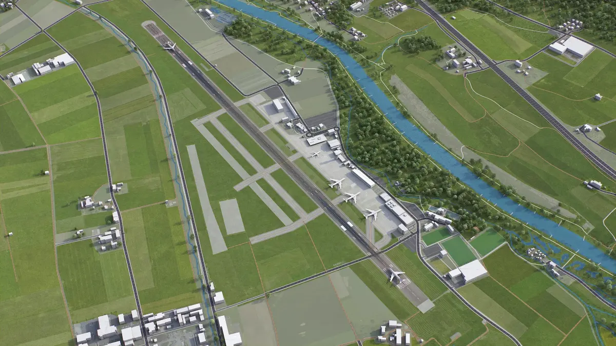 - Trees, vegetation, landuse and airport surface with the textures assigned