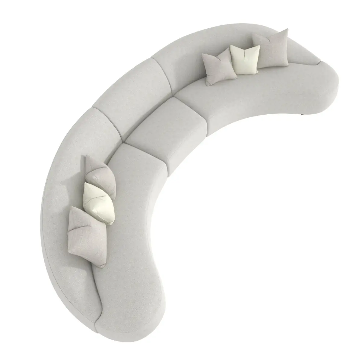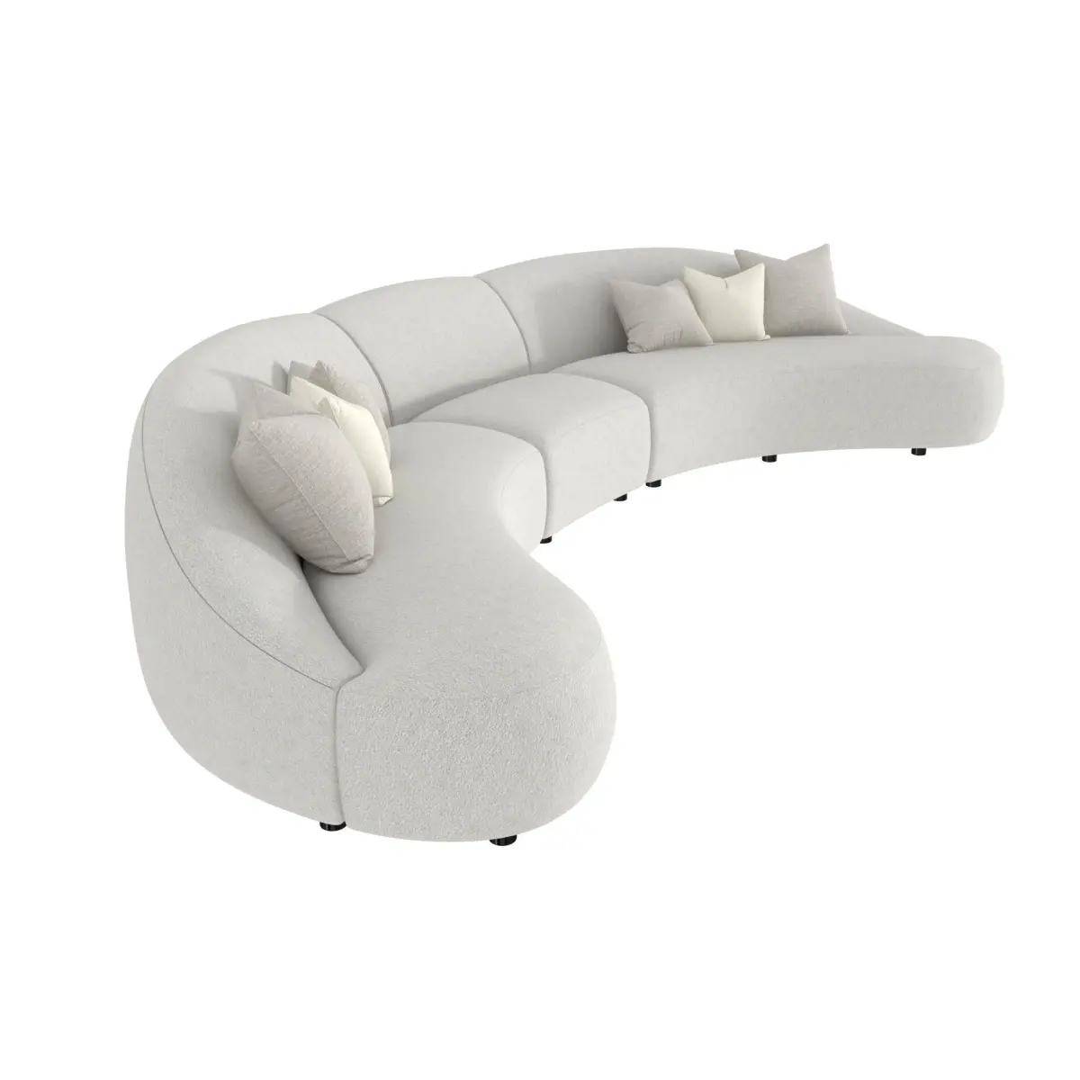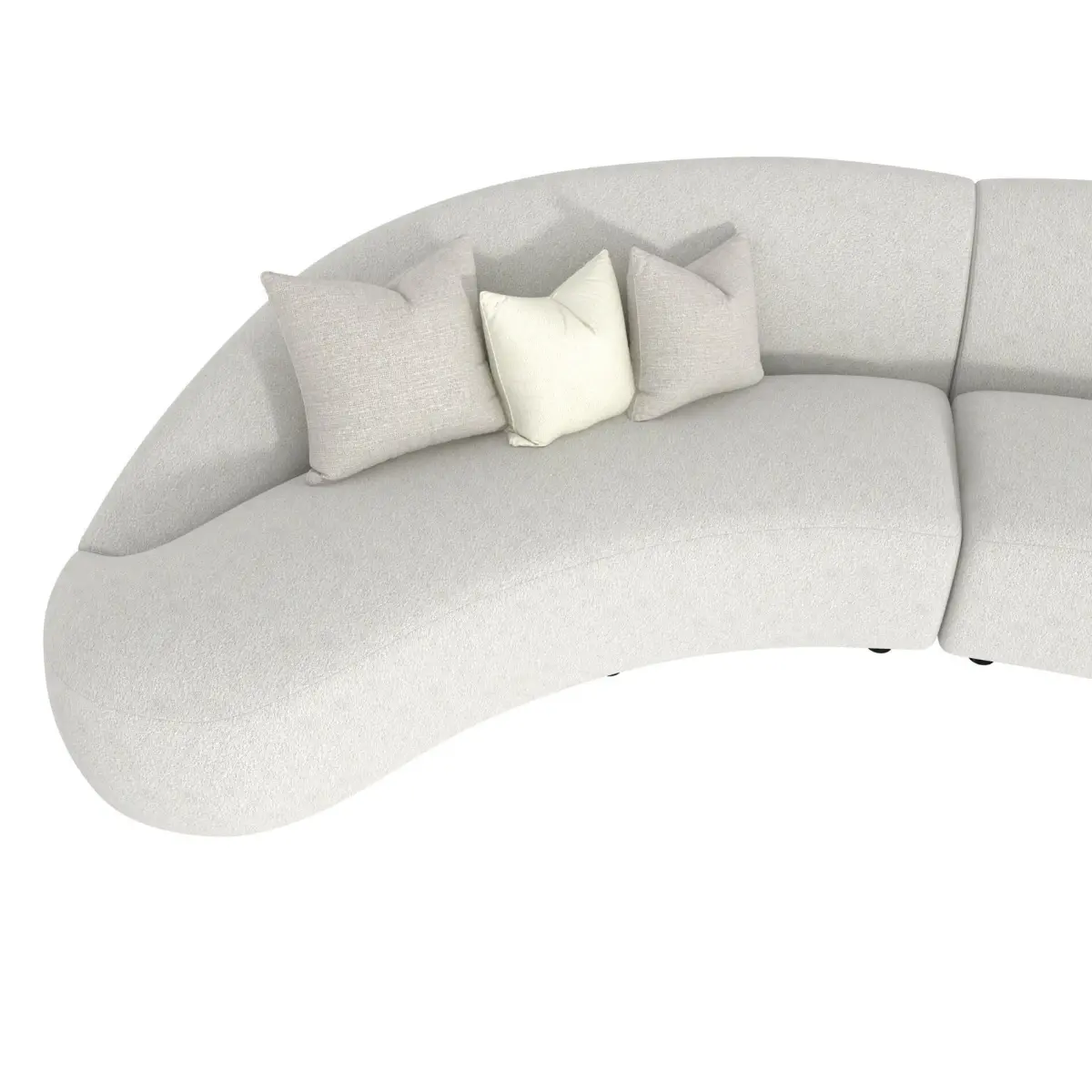 Streamlined sinuous curves make a sweeping statement on the Calder sectional. Comprised of loveseats and a center wedge chair that shape a crescent design, each piece showcases exquisite arcs and contours. The seat on every item flows to the floor, while the tight-back upholstery offers an effortless chic style.