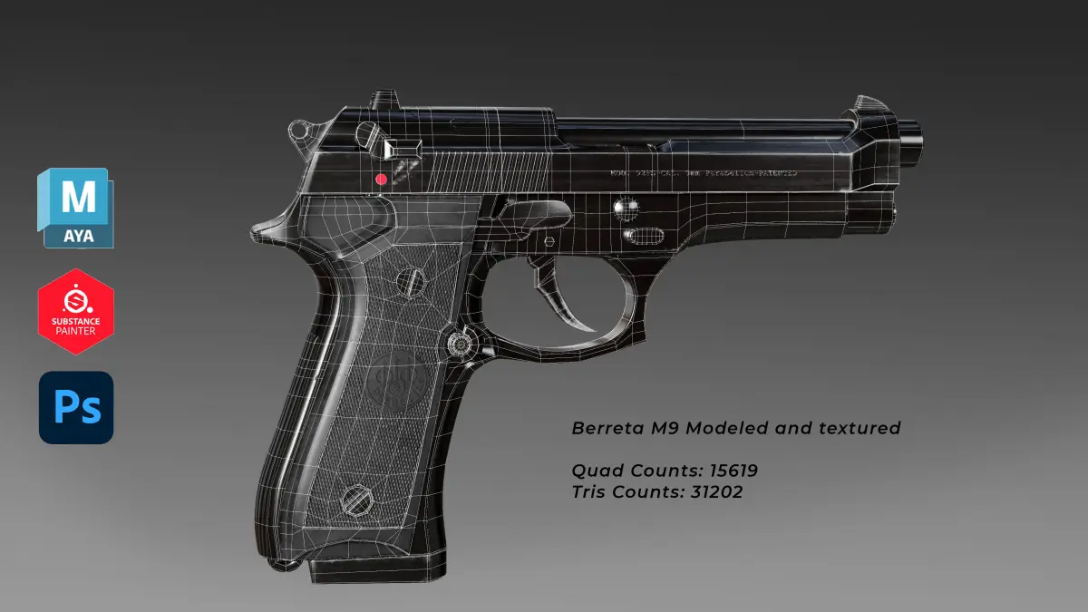 BERETTA M9 – GAME-READY 3D MODELHigh-quality, optimized 3D model of the iconic Beretta M9 pistol. Ideal for FPS, cinematic, or VR use. Includes packed & unpacked textures for compatibility with all major engines.