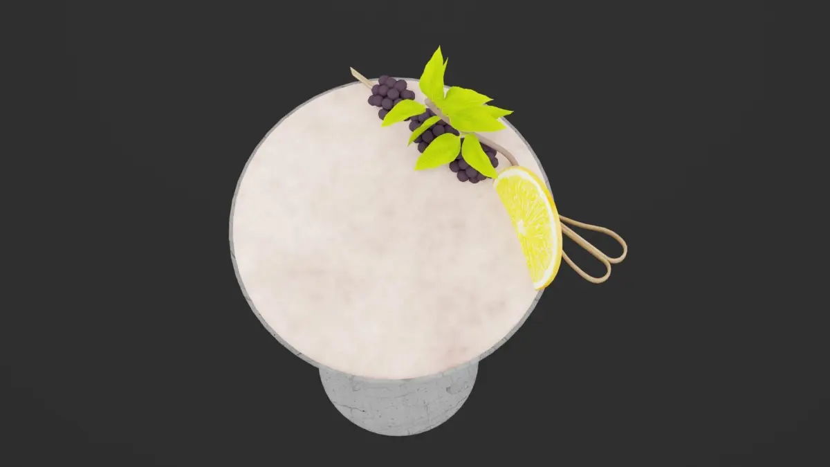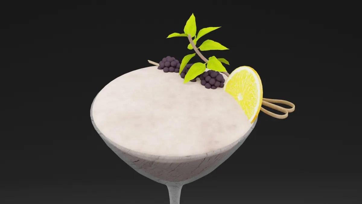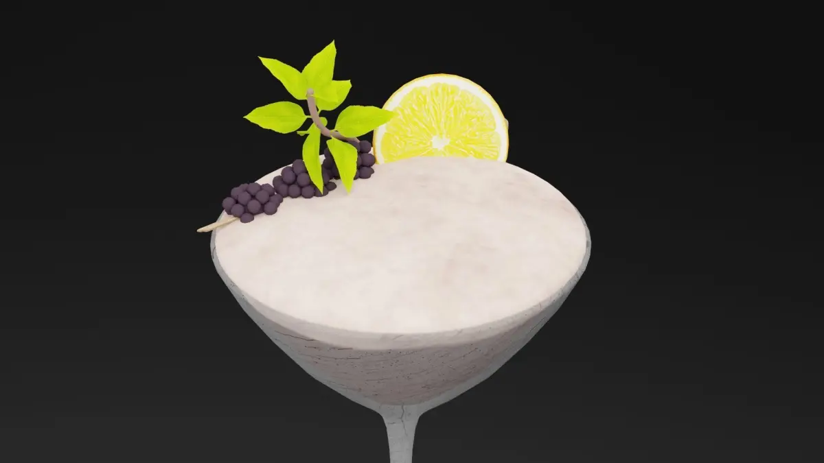 Berry Royale Juice 3D ModelA luxurious and vibrant Berry Royale Juice, presented in a tall, fluted glass with an elegant design. The juice is a rich, deep crimson shade, embodying the essence of blended blackberries, raspberries, and cranberries. The surface is topped with a delicate froth, and the drink is garnished with a skewer of mixed berries and a fresh mint leaf for a sophisticated touch. The glass features a light condensation effect, emphasizing the chilled and refreshing nature of the beverage. Rendered in 4K textures, the model captures the drink’s smooth finish, the realistic garnishes, and the fine details of the glassware. Available in Blend, FBX, OBJ, and DUF formats, this model is perfect for upscale beverage ads, cocktail visuals, or luxury 3D dining scenes.