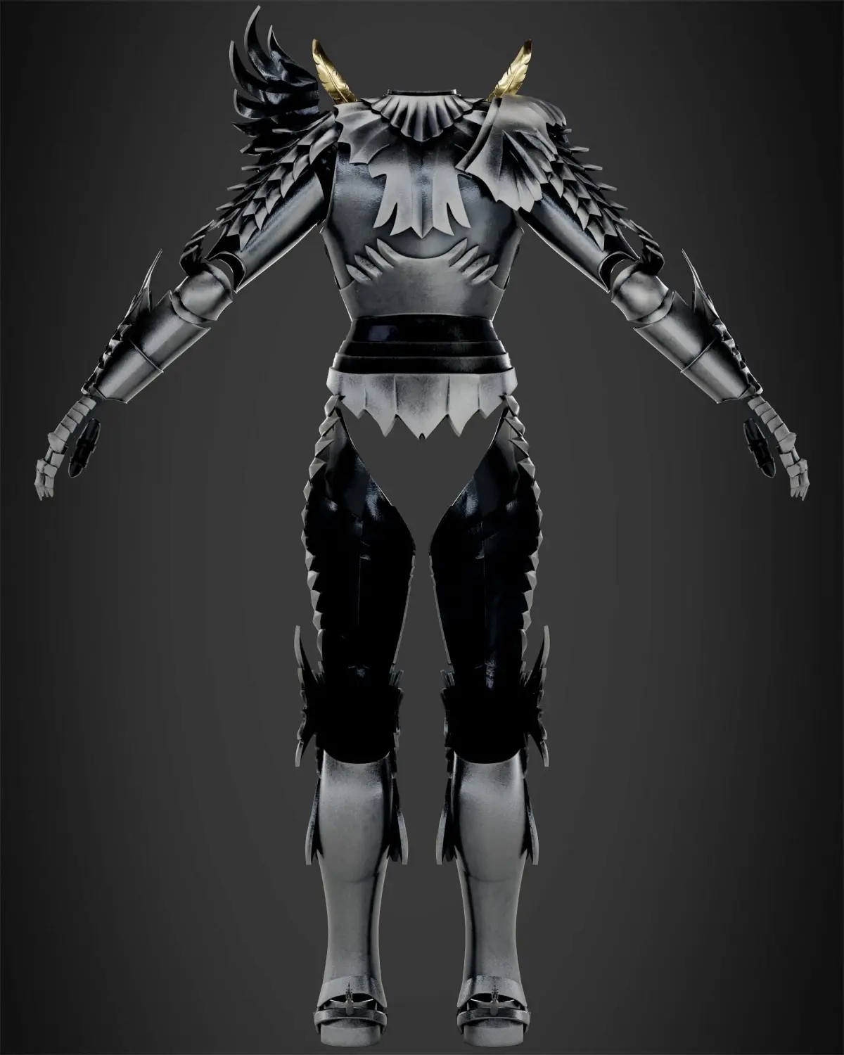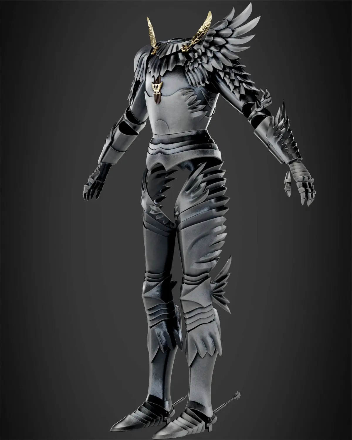 Griffith is the current leader of the reborn Band of the Falcon and supreme commander of the Midland Regular Army. Having been at the fore of many battles, he has amassed a reputation as a savior across the continent, and is revered as the Falcon of Light. As the leader of the original Band of the Falcon, he and his mercenaries are able to end the Hundred-Year War and bring peace to the war-torn kingdom of Midland. Following the desertion of his most trusted confidant Guts, Griffith beds Princess Charlotte on impulse, bringing about his imprisonment, year-long crippling torture, and the seeming demise of his dream. Though he is eventually rescued by the band, his state of extreme invalidity and undying desire to obtain his own kingdom compel him to sacrifice his comrades during the fifth Eclipse, for kinsmanship with the God Hand as their fifth member Femto – a demonic, idealized version of himself stripped of his human inhibitions. In time, he is incarnated into the Physical World, concerned solely with the realization of his dream, which comes to pass with his thwarting of the Kushan invasion of Midland, the Great Roar of the Astral World he prompts, and the rise of his utopian capital city, Falconia.The full plate silver-white armor Griffith wears following his incarnation is the most ornate of all the armors he has worn. The armor is considerably embellished with avian motifs, with nearly all of the plate components bearing some degree of feathered patterning and the right pauldron extending into a striking wing. It features both greaves and spauldrons, unlike Griffith's previous armors. Furthermore, the sallet is more refined and possesses more pronounced avian motifs, featuring more streamlined eye holes on the visor, as well as a more feather patterned visor rim and nape.