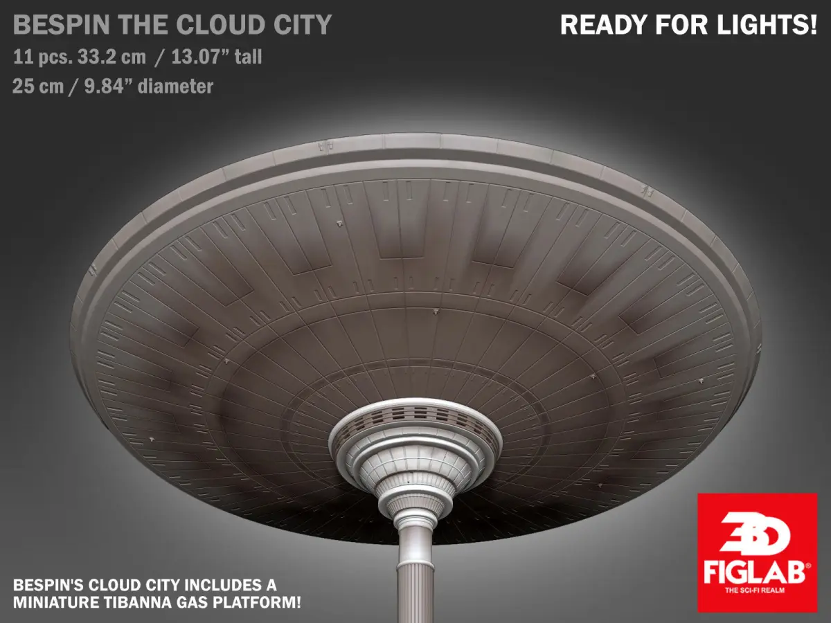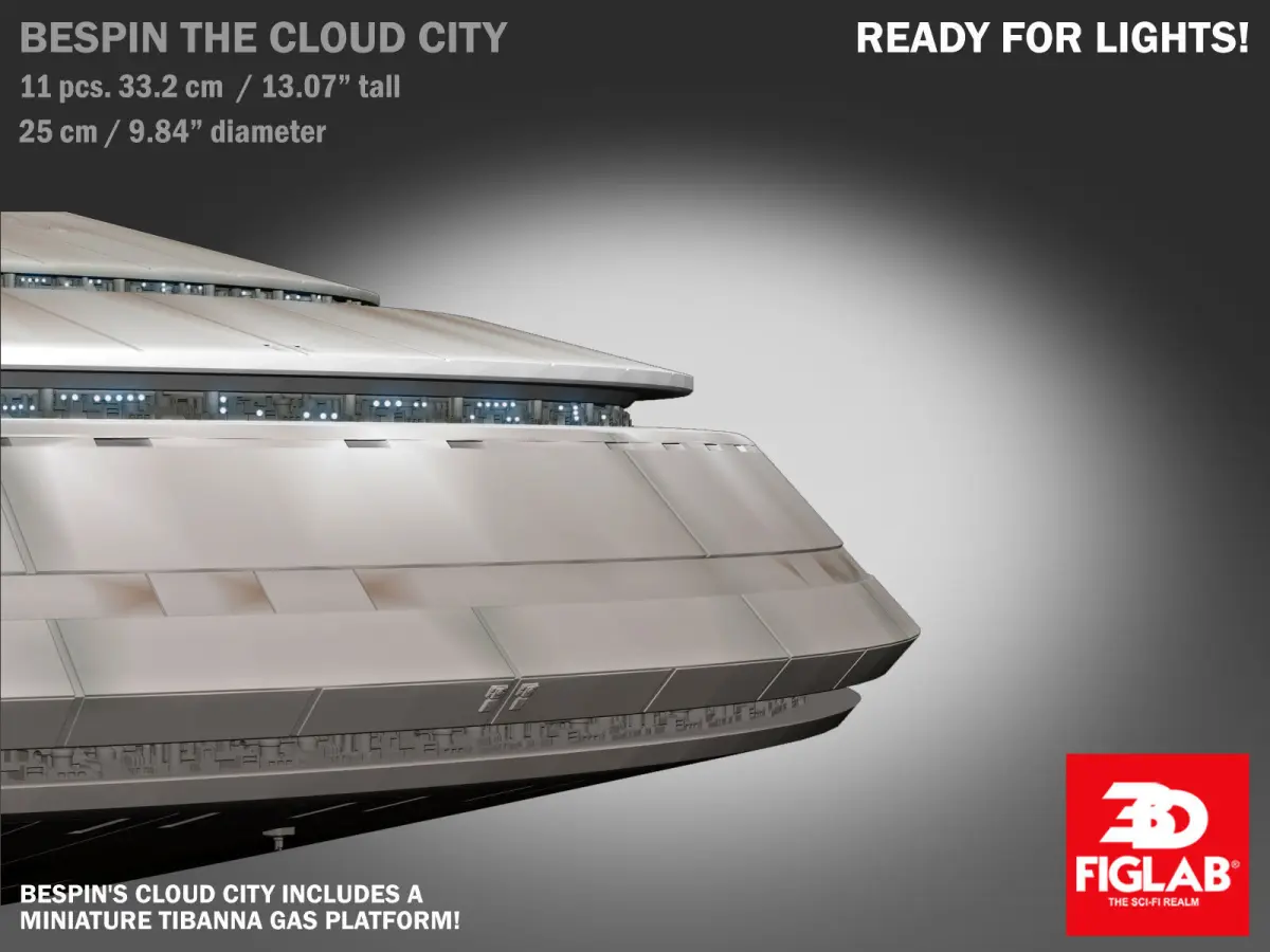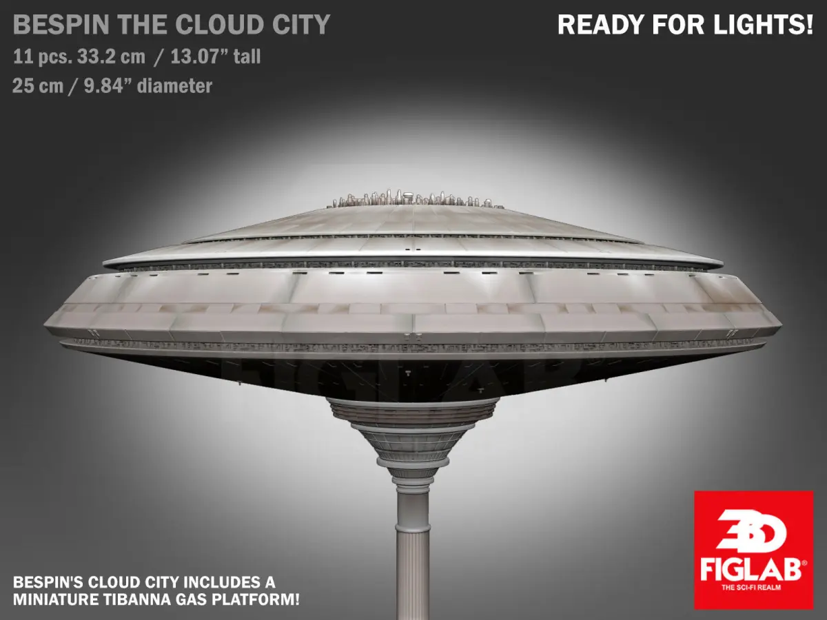 We proudly bring you this highly detailed model of Bespin, as seen in the movie Star Wars Episode V: The Empire Strikes Back, this kit is prepared to be ligthed and displayed in all it's glory by several support points that can be hidden to give the apprearance to be floating. We're also including a small Tibanna Gas Platform, so you can make a diorama.