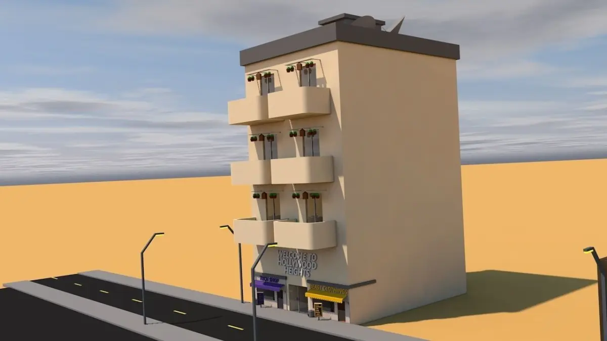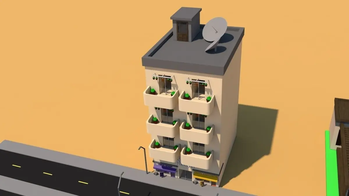 .a big company building.shops.fire department.apartments.gas station.house.construction site.hospital.resturant