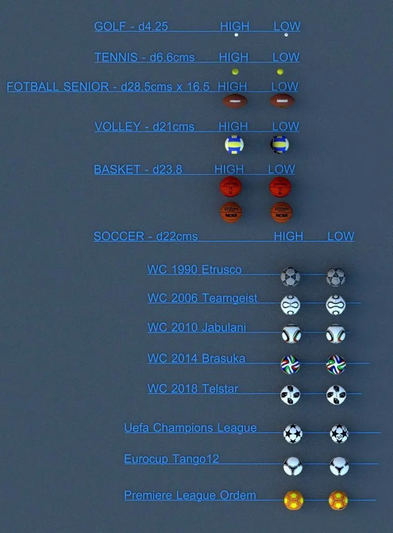 Official size for all the items