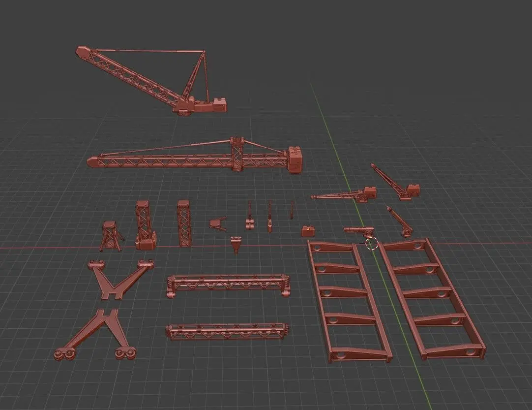 Upgraded version of the construction cranes for tabletop miniature sceneries. Suited for tabletop gaming, dioramas and low poly gaming, design, animation. Includes 6 models (19 individual parts), high attitude field cranes, one short overhang cranes and a modular extenders. Ideal for construction modern, interwar and scifi settings over plastic, paper and cardboard sceneries.