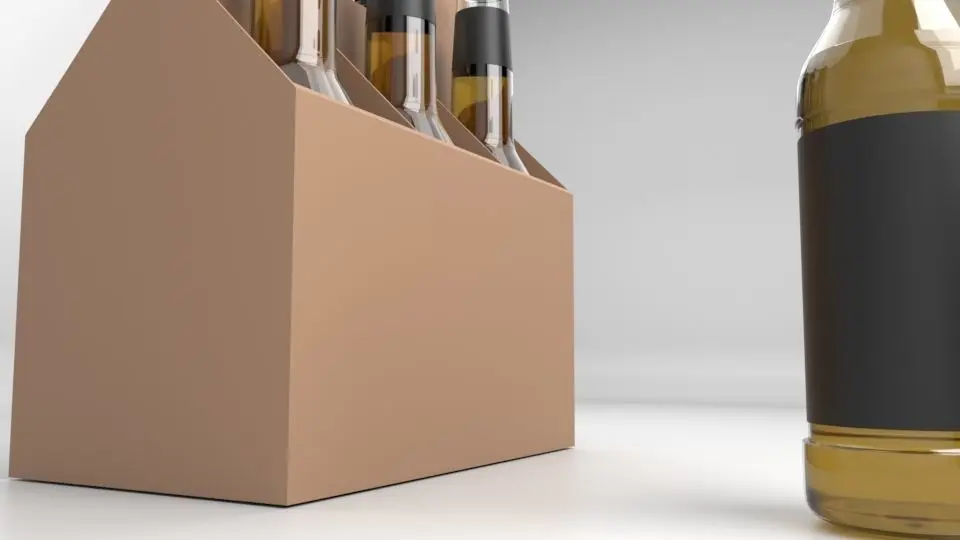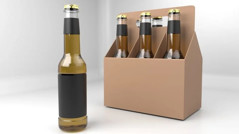 Beverage branding model set containing 6 bottles in a box package with a handle as well as a display bottle. Each bottle has a metal cap, neck label, main label and liquid that can be textured according to your branding needs. NOTEXTURES. NO LIGHTING.
