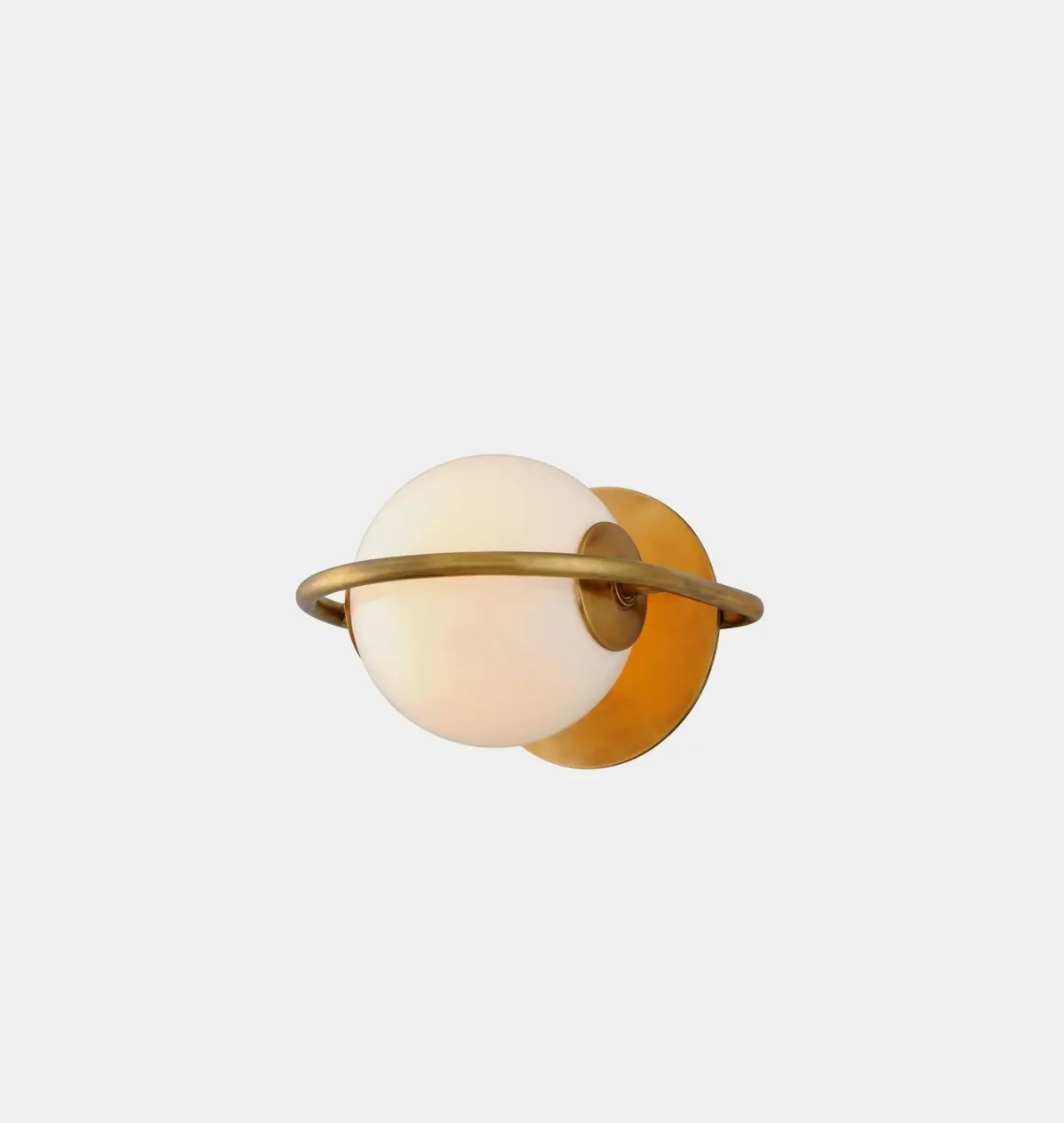 DescriptionModern simplicity meets innate luxury in the Beverley Wall Sconce, an ode to a beautiful pearl earring once belonging to Elizabeth Taylor. Finished in a vintage brass, its rounded frame embraces a single opal glass sphere, nestled in like a pearl against its round backplate. Enduringly elegant, the Beverley will elevate any aesthetic.