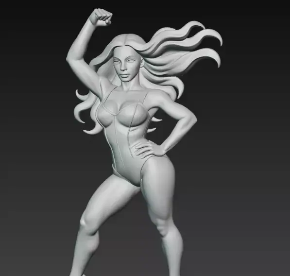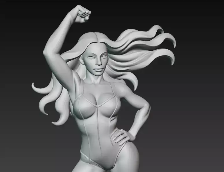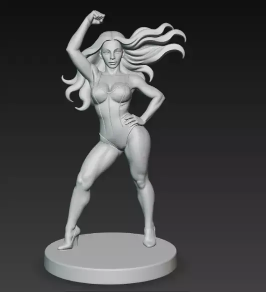 This exquisitely detailed 3D model portrays Beyoncé in her iconic Single Ladies dance pose, featuring a fierce stance with one hand on her hip and the other raised, wearing a striking black leotard and high heels. Designed for 3D printing, the model highlights her flowing hair and metallic outfit textures, mounted on a sleek black pedestal base. Ideal for fans, collectors, or as a bold decor statement, it celebrates her powerful performance legacy.