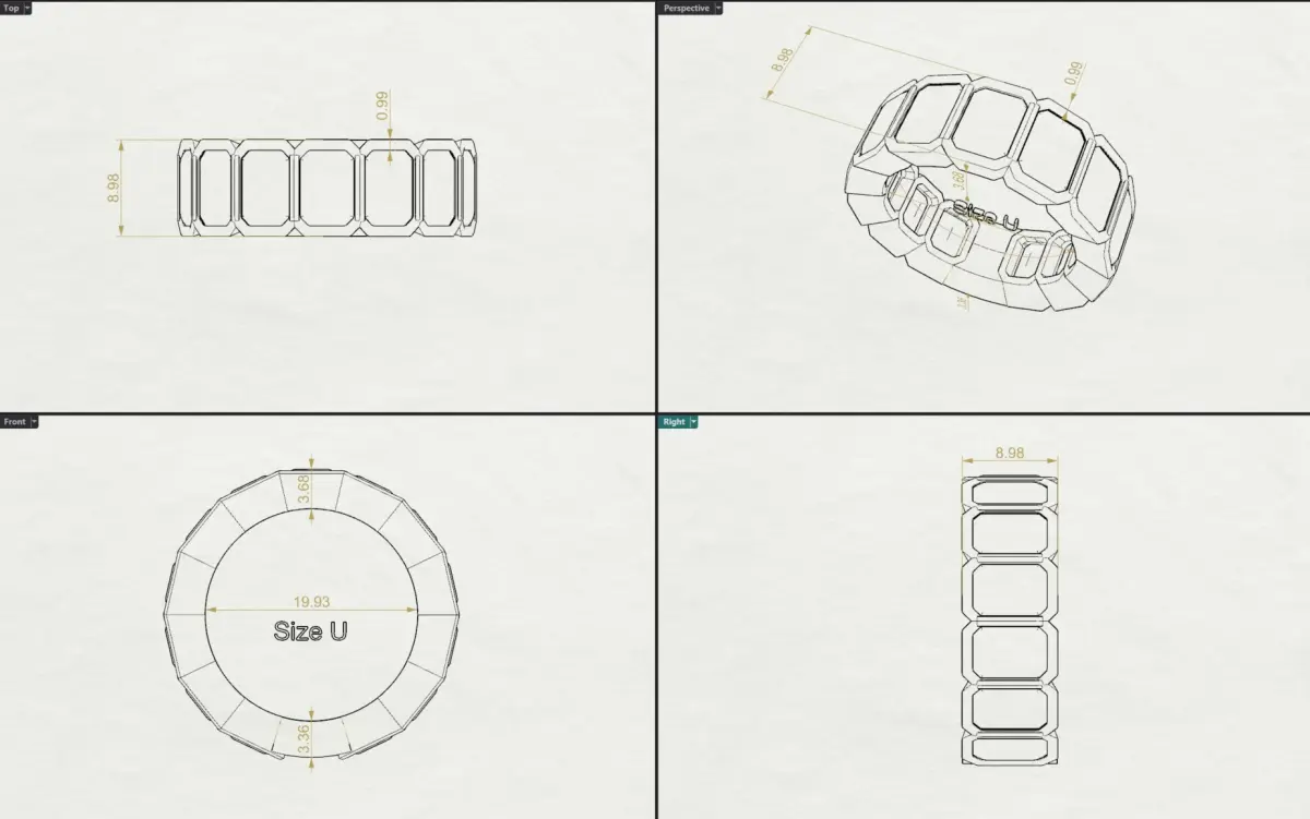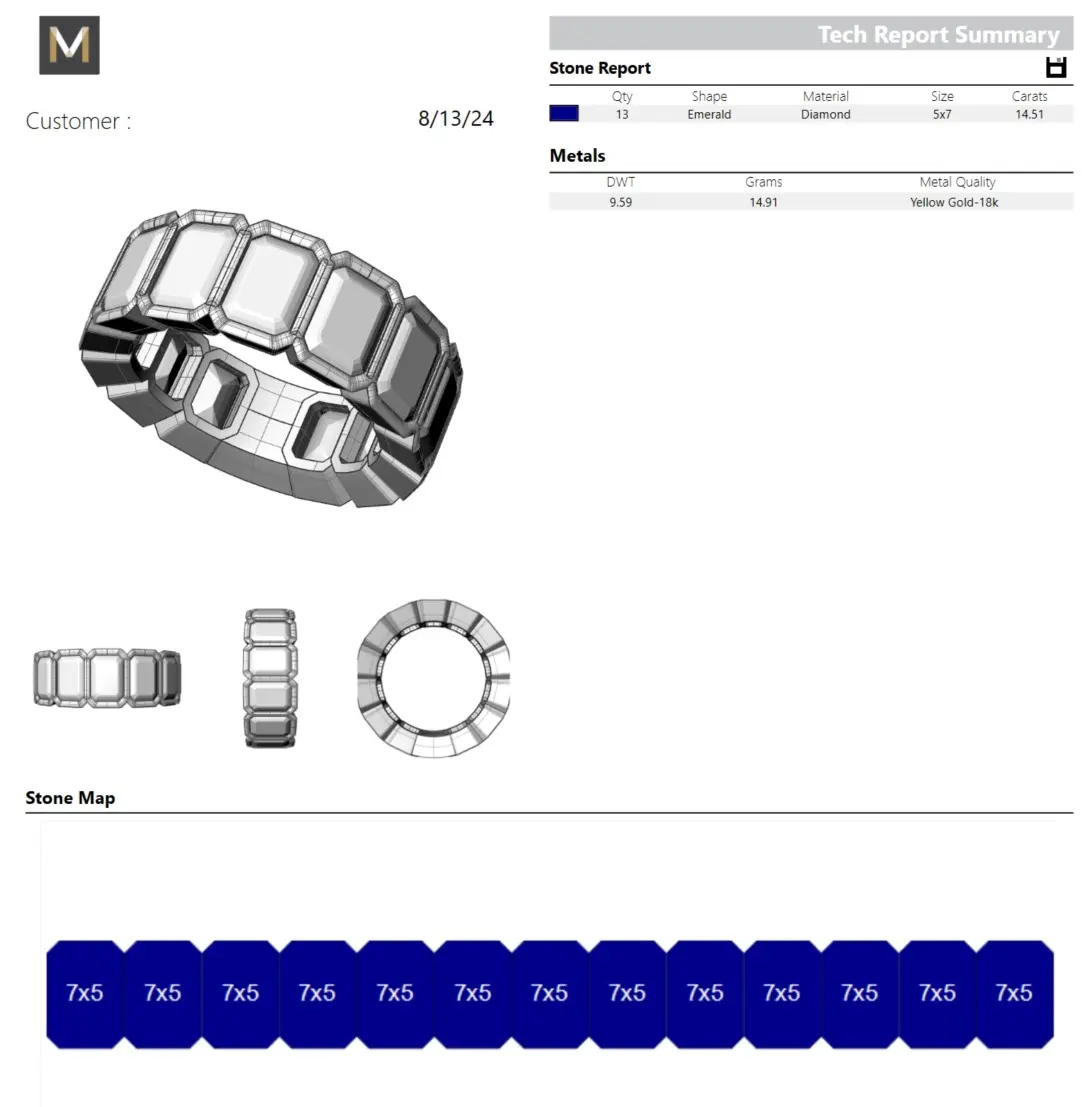 13 X diamonds, Emerald cut 7x5mm (equivalent to 1-1.2ct diamonds),STL file size U, finger size can be changed in 3d file,Plain piece at back for resizing, Eternity style Mens ring,Bezel set ,Total diamond weight (depending on each diamond) = approx 13 to 16 carats