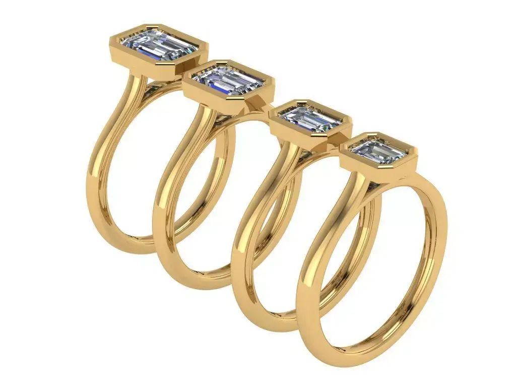 Home Catalog Bezel setting emerald ring set of 4 3D print model