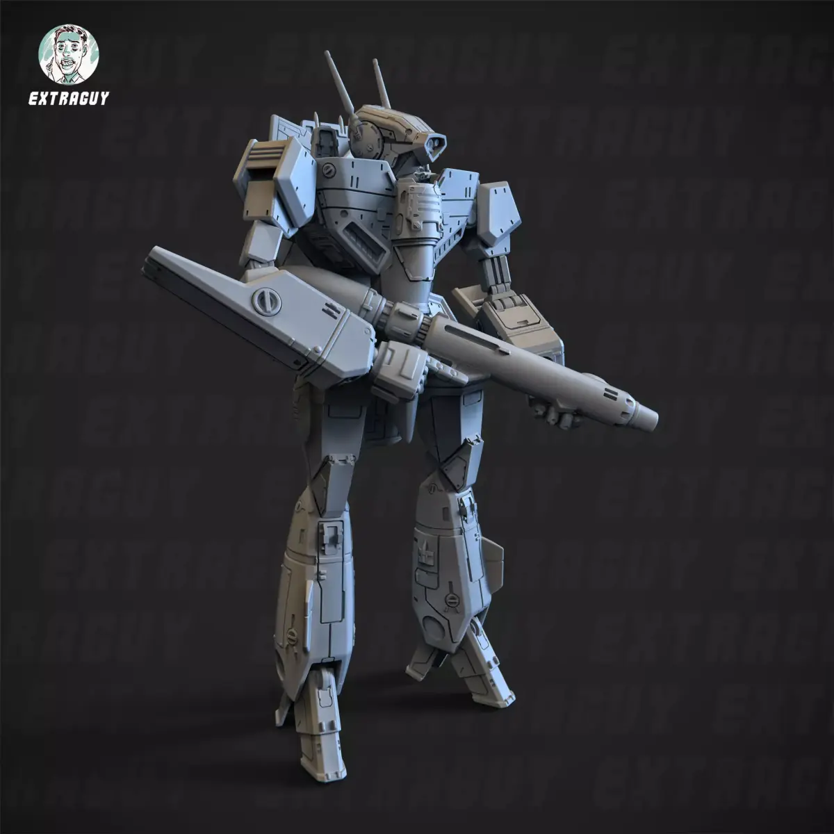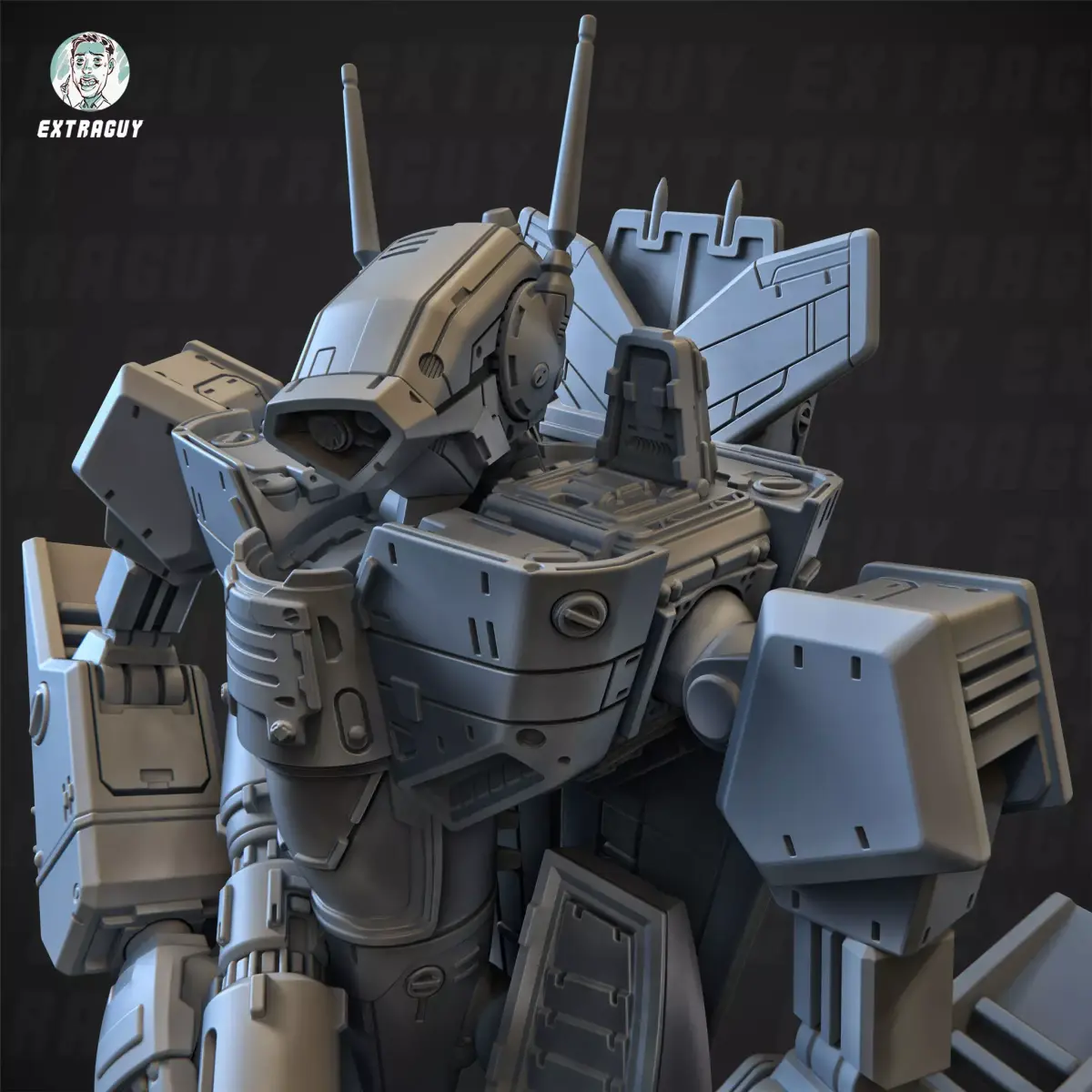 Ola, I present you Robotech VF-1J Valkyrie 135mmMech is about 140mm in height (base on a 15mm human scale)Approximate dimension of the set are as follows Height: 143mm Width: 111mm Depth: 59mmAsset is cut in parts for easy assemblycomes withweapon (with and without hand attached)various hand poses