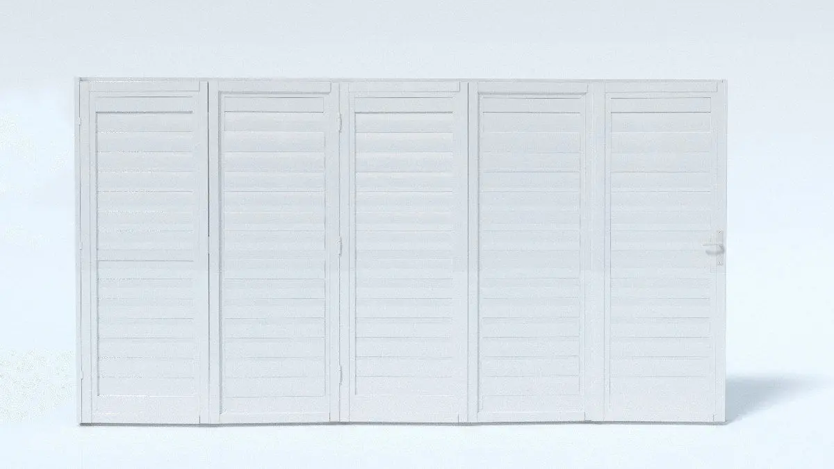 This is a model of a Bi-fold shutter door built to scale originally build with Blender 2.79. All the doors’ parts are built to scale and are joined individually to a bone structure. The doors and outer frame are separate, thus the shutters can open/close individually. The Blend file contains and a skeleton attached to the doors and an open/close door animation. Blender plain textures are used on the doors.