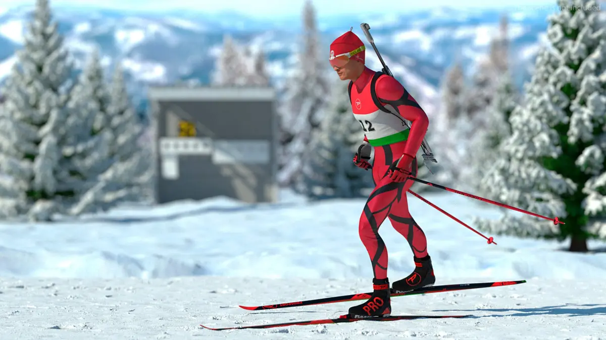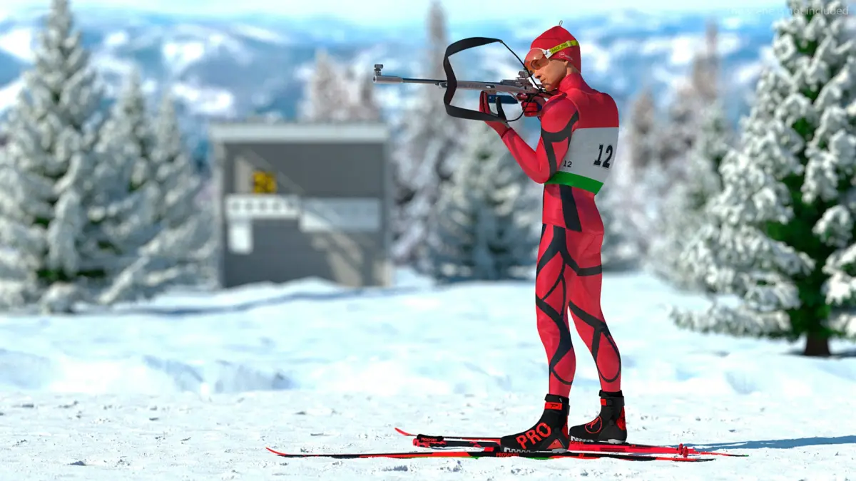 Biathlon Skier Athlete Rigged is a three-dimensional model of biathlon competitor, an athlete skilled in both cross-country skiing and precision rifle shooting.
