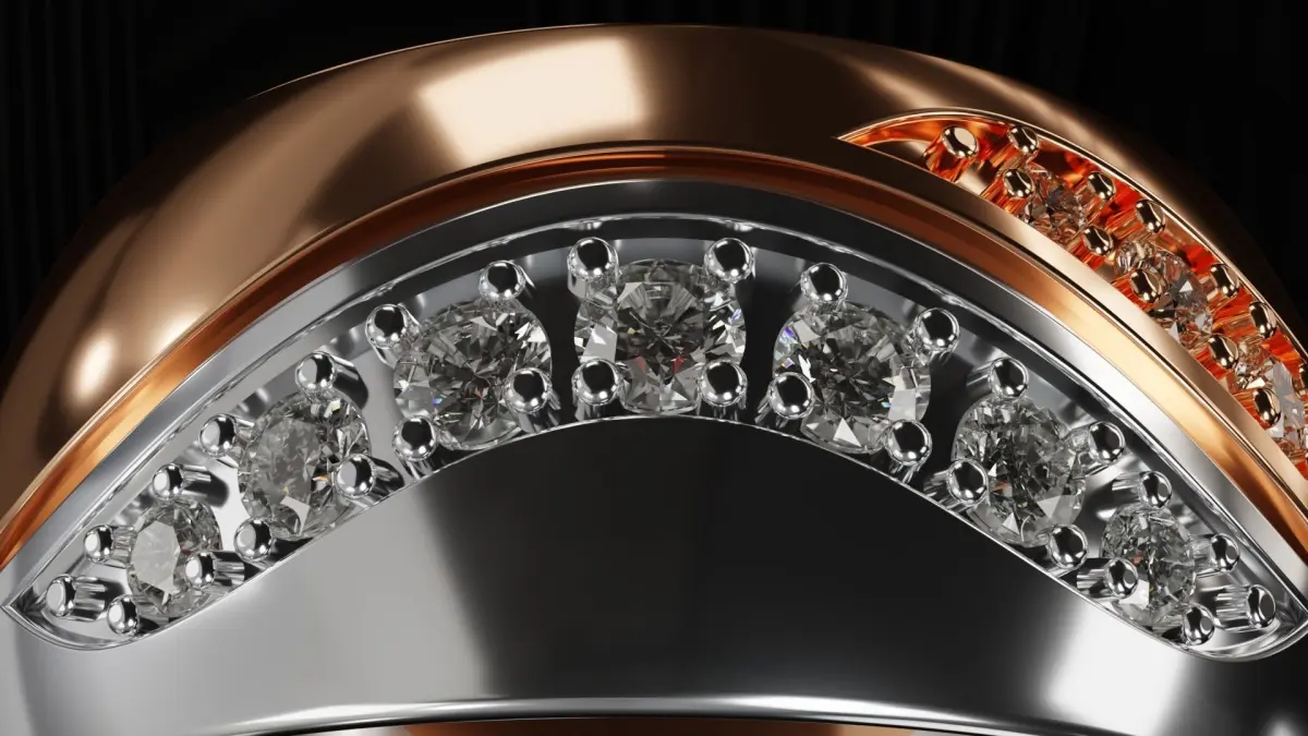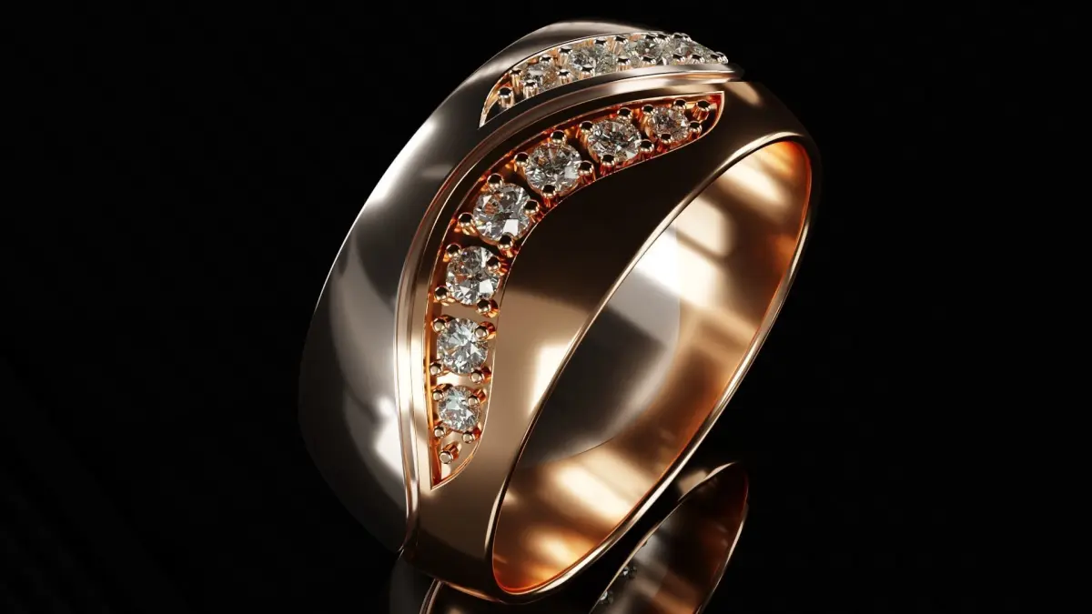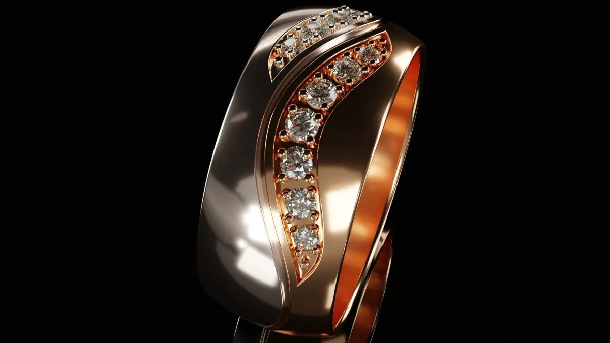 3D Model of Bicolor Ring with Gems that can be used for 3D Printing or CNC machining for creating real jewellry. Project contains two sides of ring, also you can use it for creating full ring with one color.