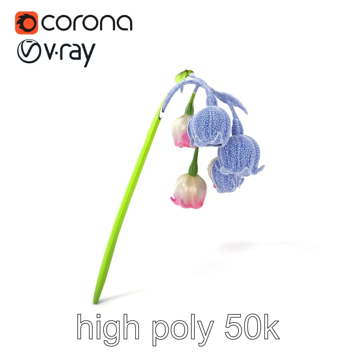 Each model has 3 levels of detail: low-poly, middle-poly, and high-poly, which allows for the use of this model in production rendering (such as 3ds max, Maya, Cinema 4D, Blender, Vray/Corona/Cycles, and all other), game engines (Unity and Unreal compatible), and interactive presentations, providing a choice of detail based on the LOD System principle. This model is perfect for botanical renditions, garden design visualizations, and floral arrangement simulations. The model's textures are PBR, Diffuse, NormalMap, and reflection/roughness/metallic, suitable for any modern rendering engine. All models are accurately unwrapped and have no overlapping UV.